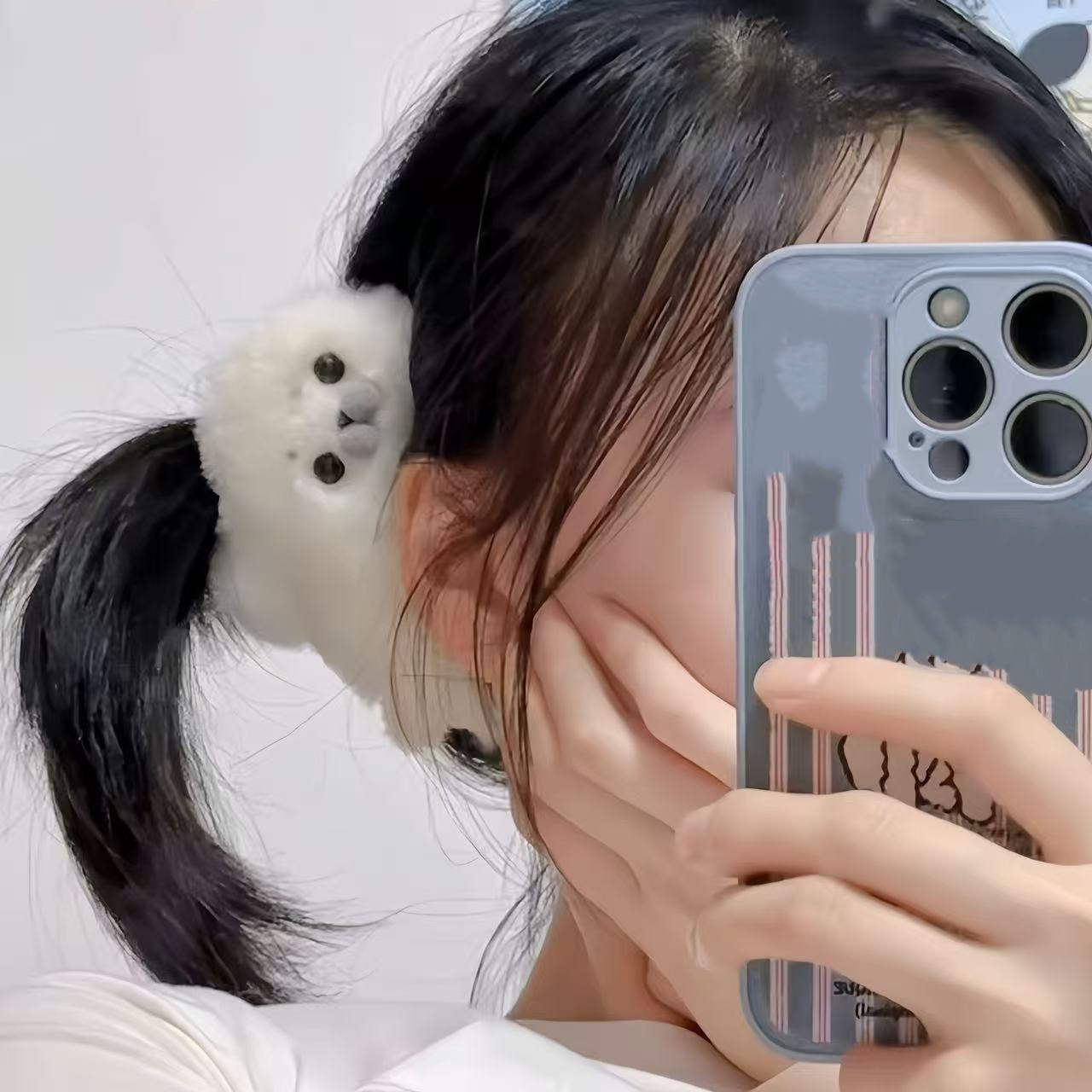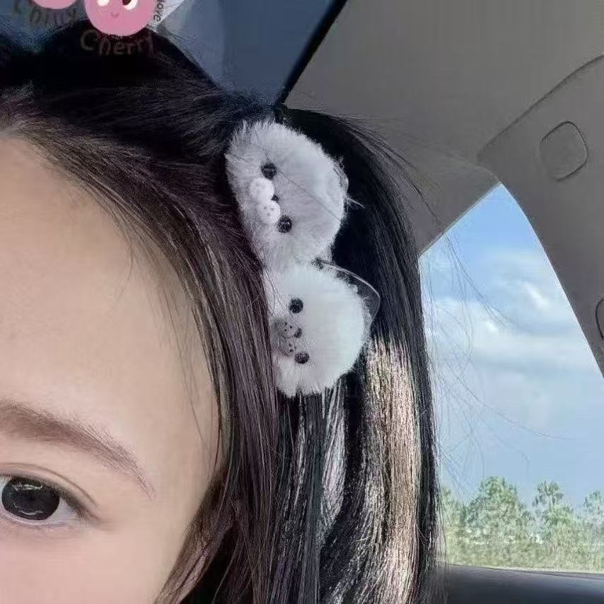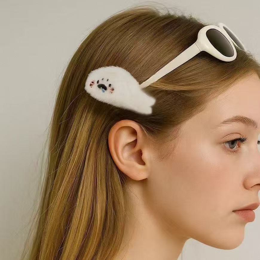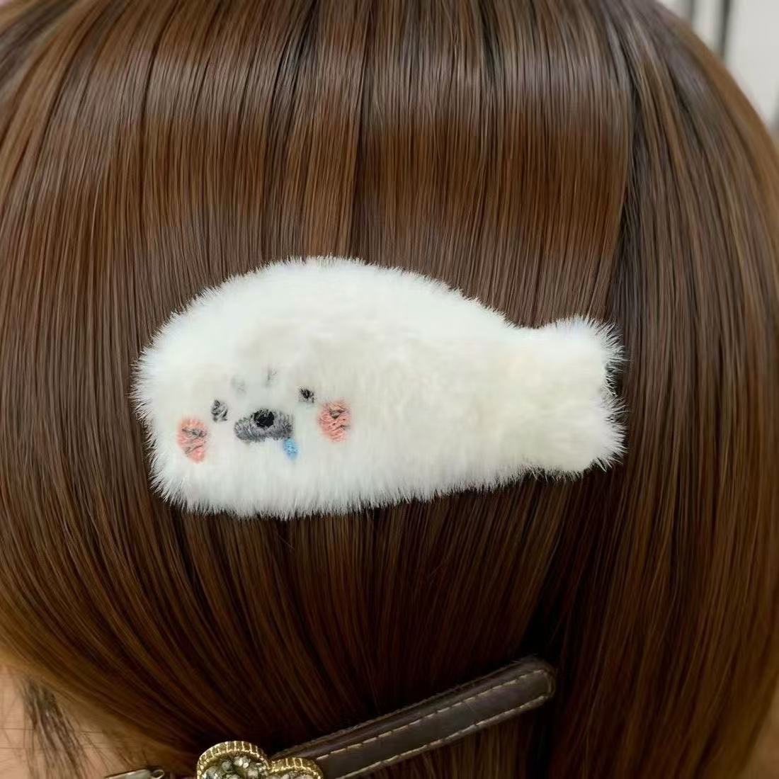 小海豹发夹秋冬毛绒碎发夹少女可爱发箍侧边刘海发夹卡通甜美发饰