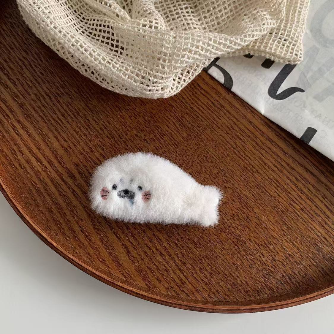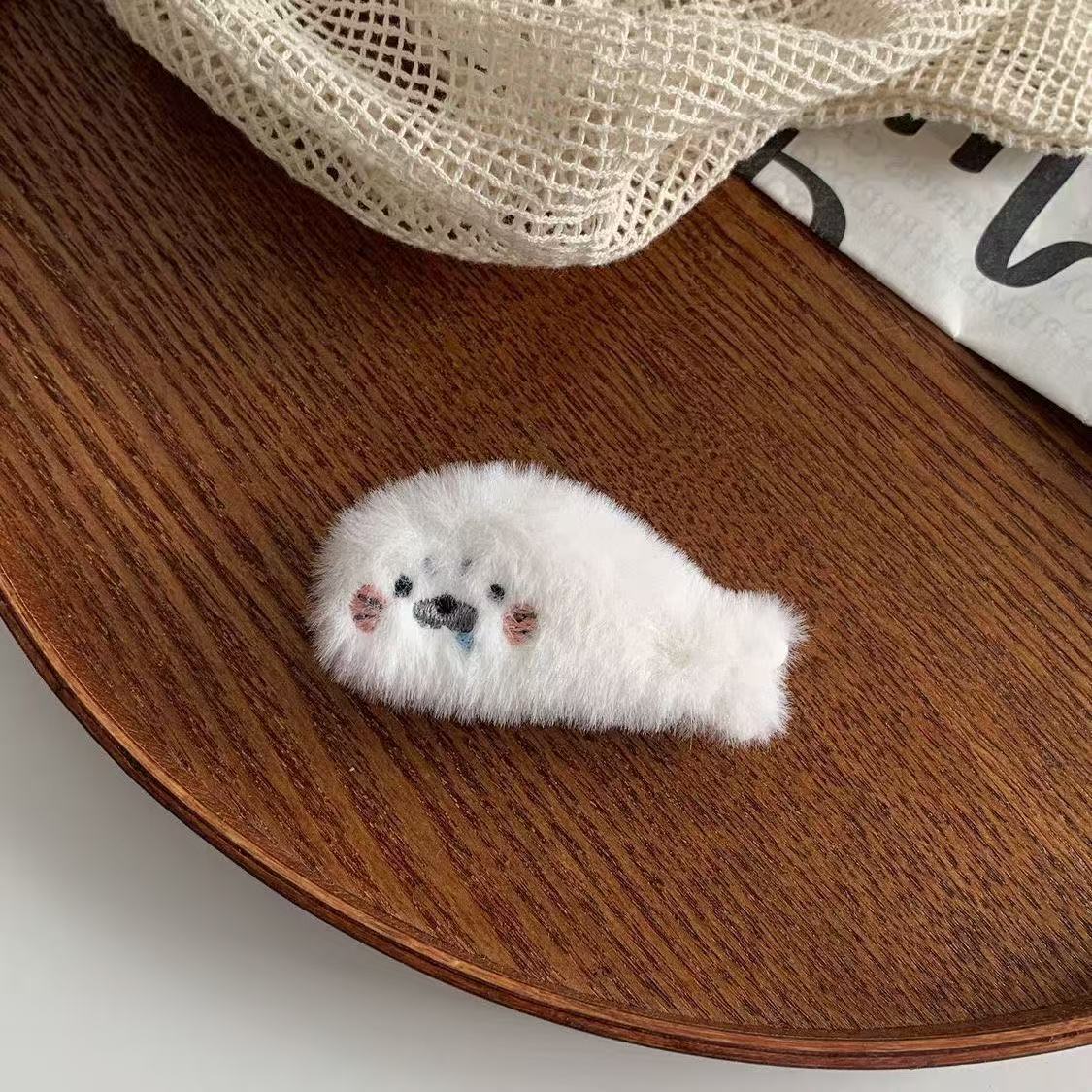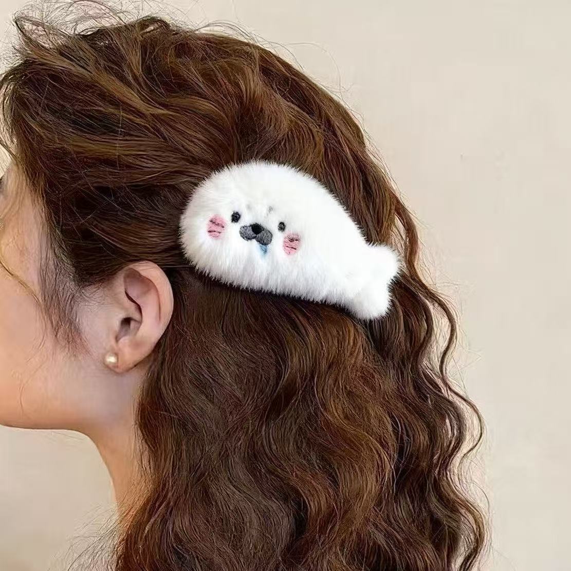 小海豹毛绒发夹配饰女高级感简约萌趣碎发侧边夹韩系学院风发饰品