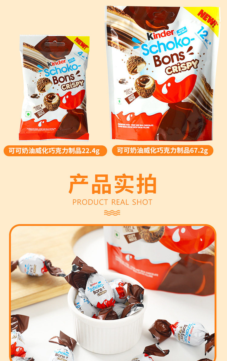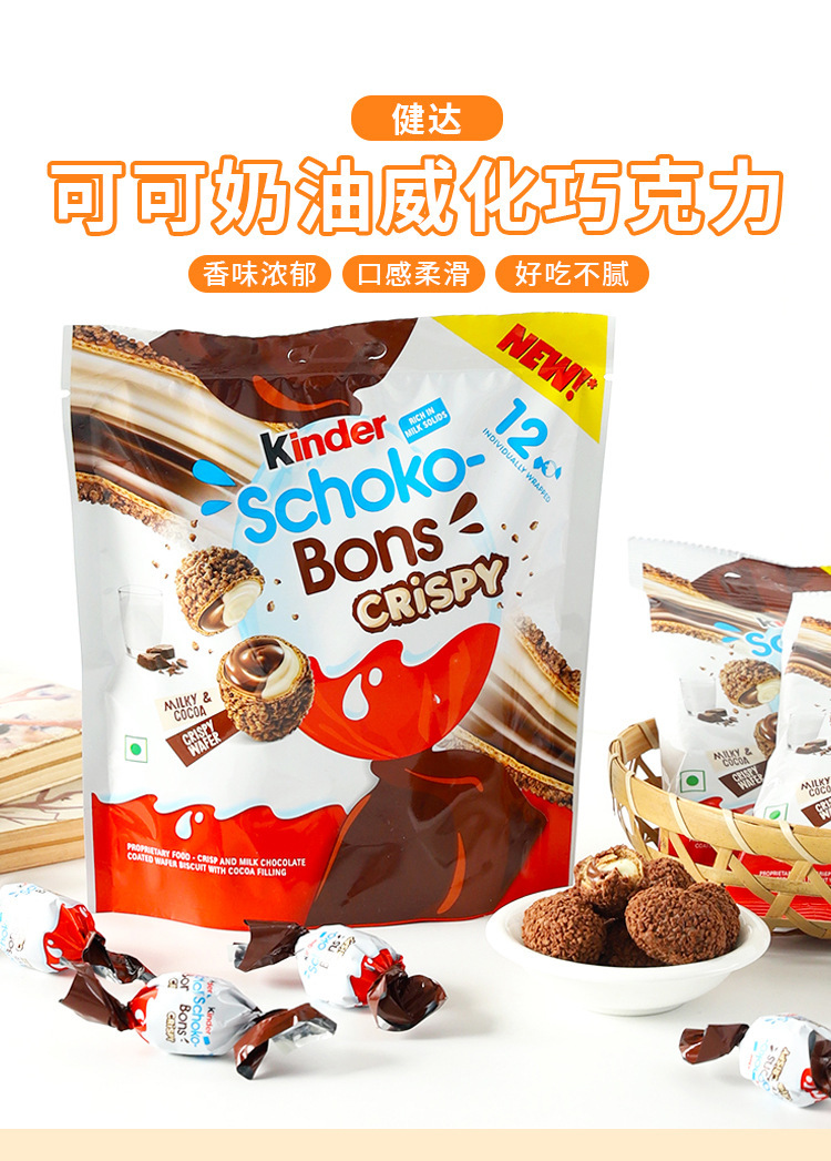 进口健达Kinder可可奶油夹心球形威化巧克力饼干儿童休闲零食