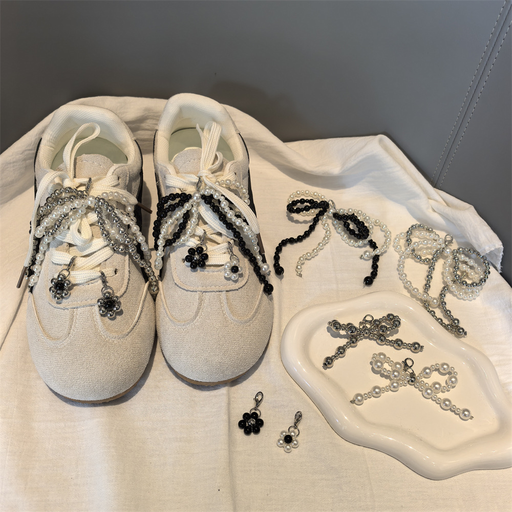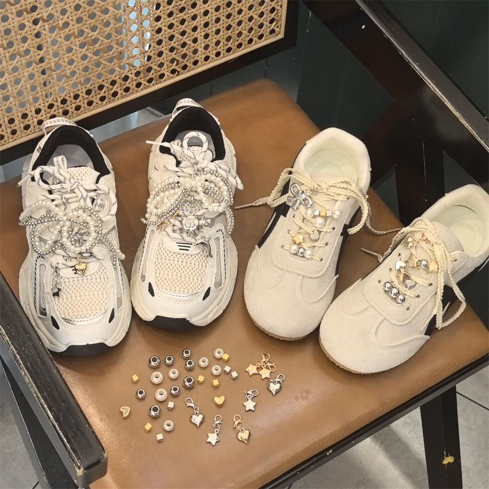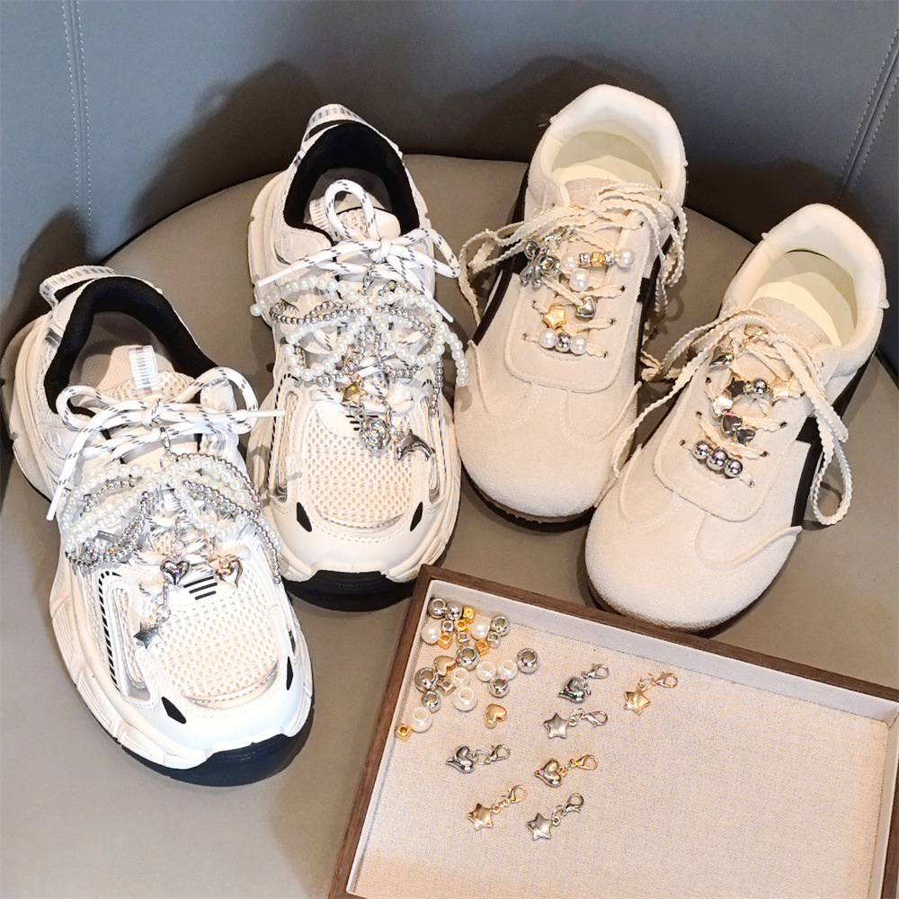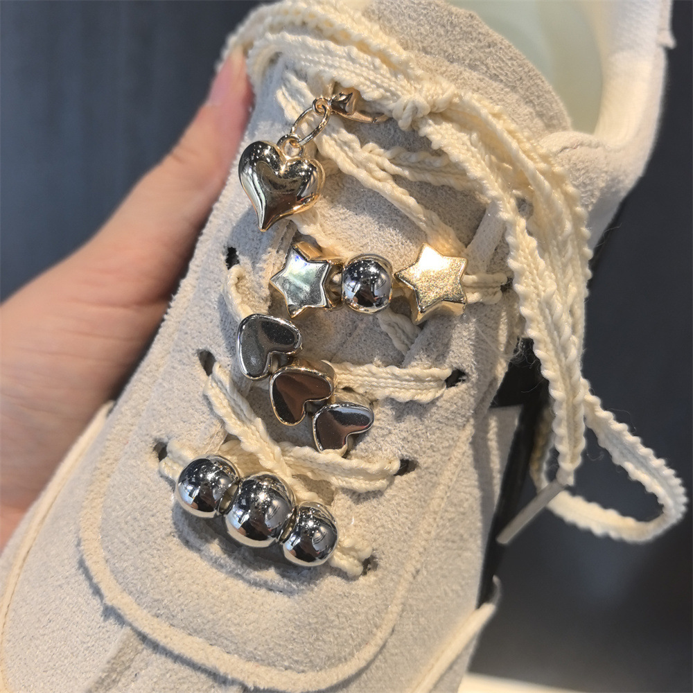 德训鞋银色串珠珍珠蝴蝶结鞋扣爱心五角星鞋带装饰配饰跨境大孔珠