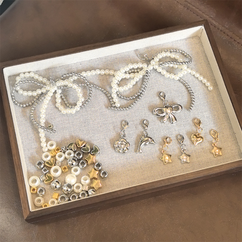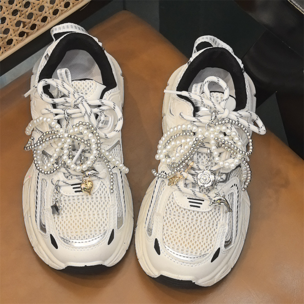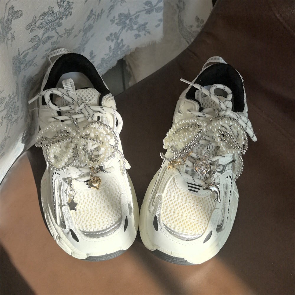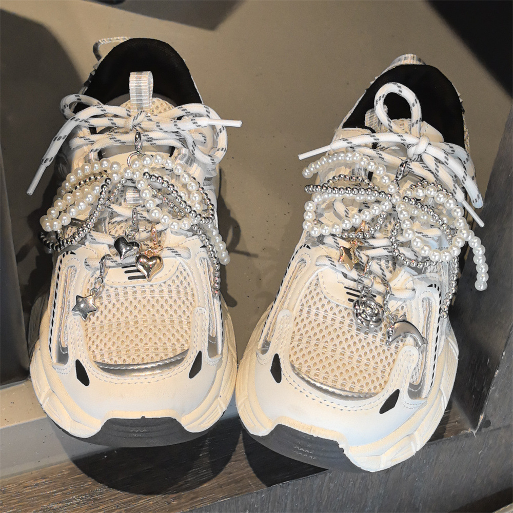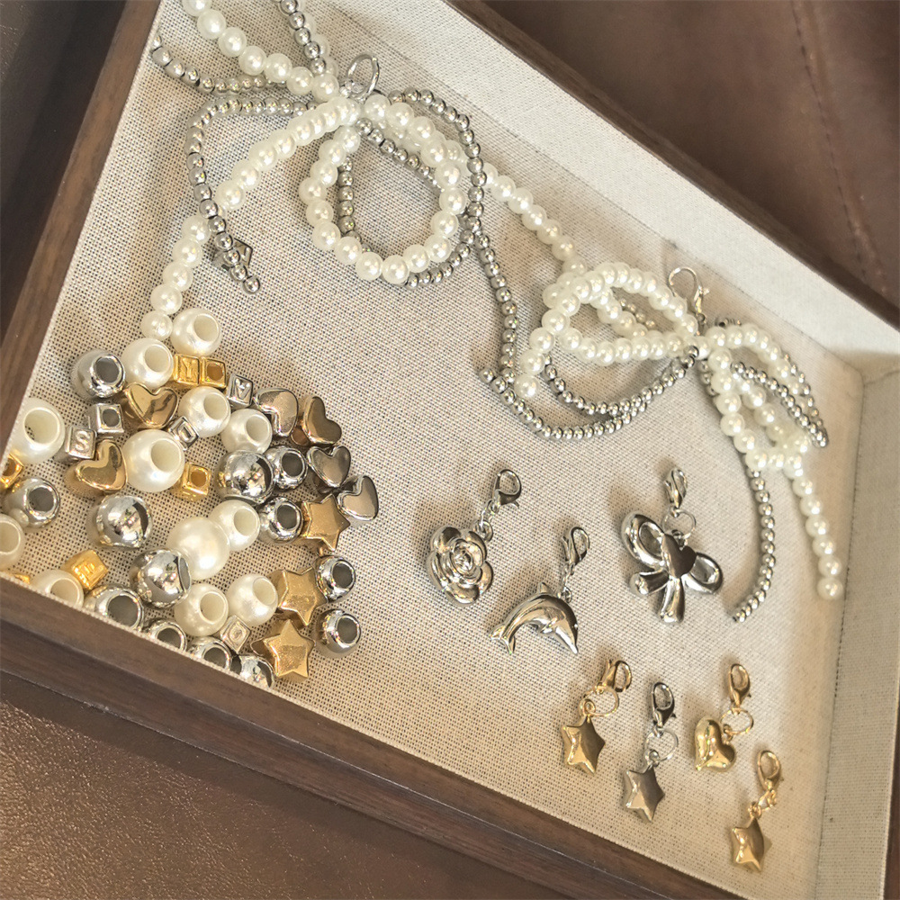 德训鞋银色串珠珍珠蝴蝶结鞋扣爱心五角星鞋带装饰配饰跨境大孔珠