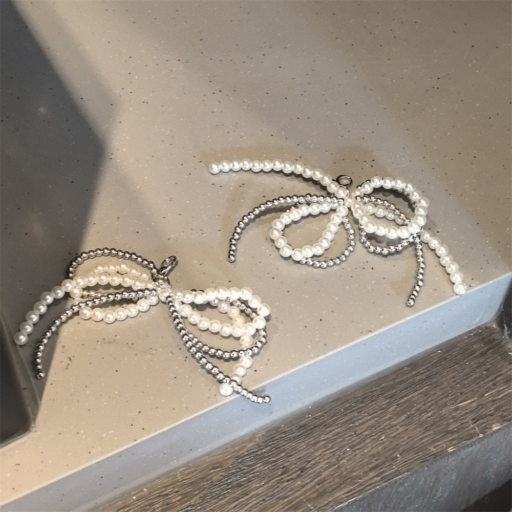 韩版芭蕾风双色珍珠蝴蝶结鞋花高级感串珠小花鞋子装饰德训鞋配饰