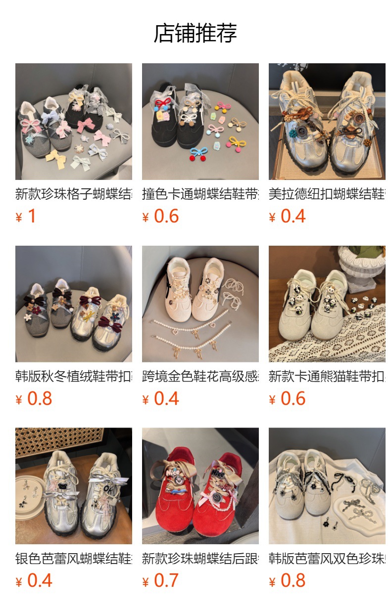 美拉德纽扣蝴蝶结鞋带扣水钻串珠粉色鞋子装饰大孔珠打结绳鞋花