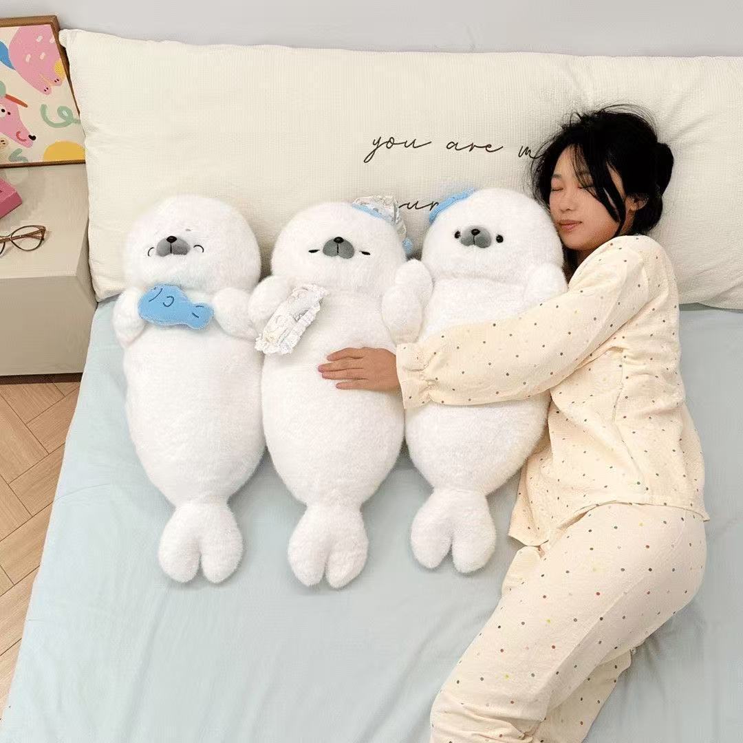 新款哄睡海豹公仔跨境热卖爆品毛绒玩具女生陪伴礼物长条陪睡玩偶