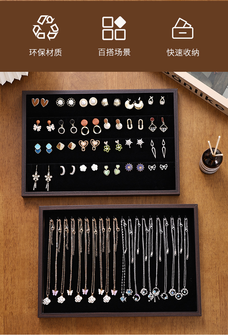 颜色 黑梨木色项链托盘,黑梨木色百位戒托盘,黑梨木色横条戒指托盘,黑梨木色耳环托盘