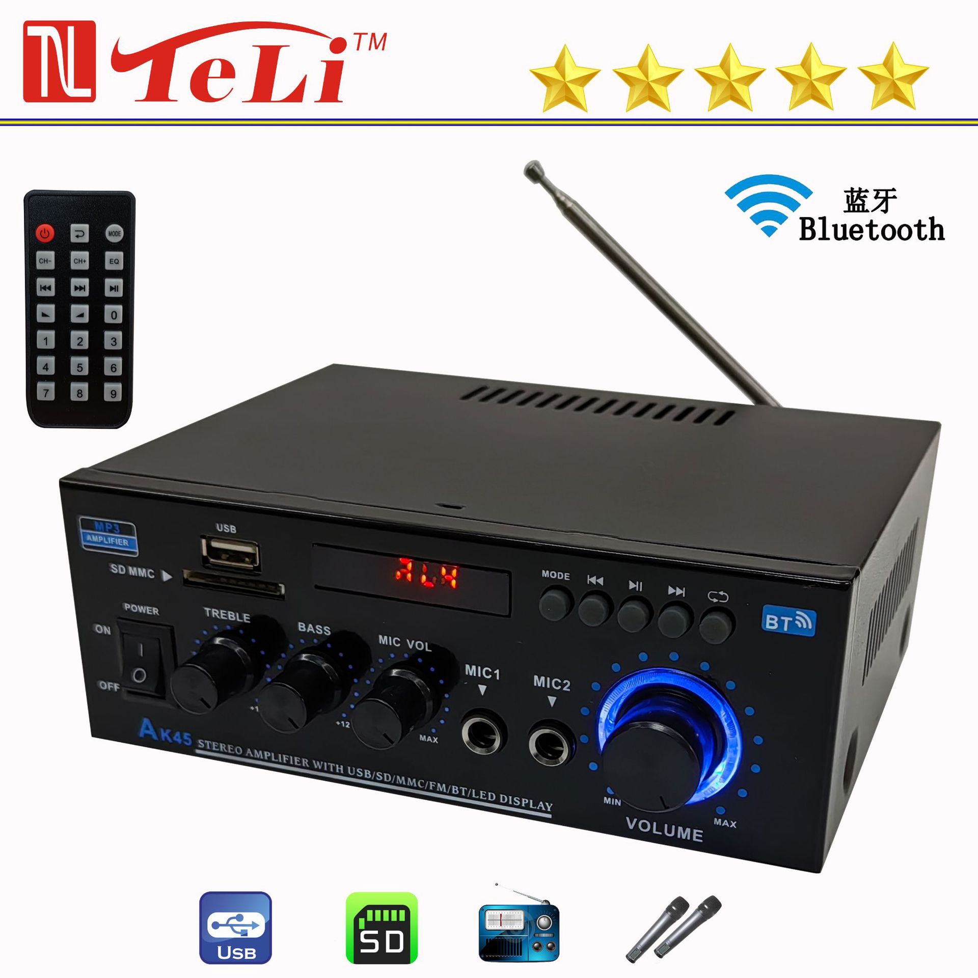 跨境外贸迷你AK45蓝牙U盘收音12v/110V-220v交直流车载数字功放机