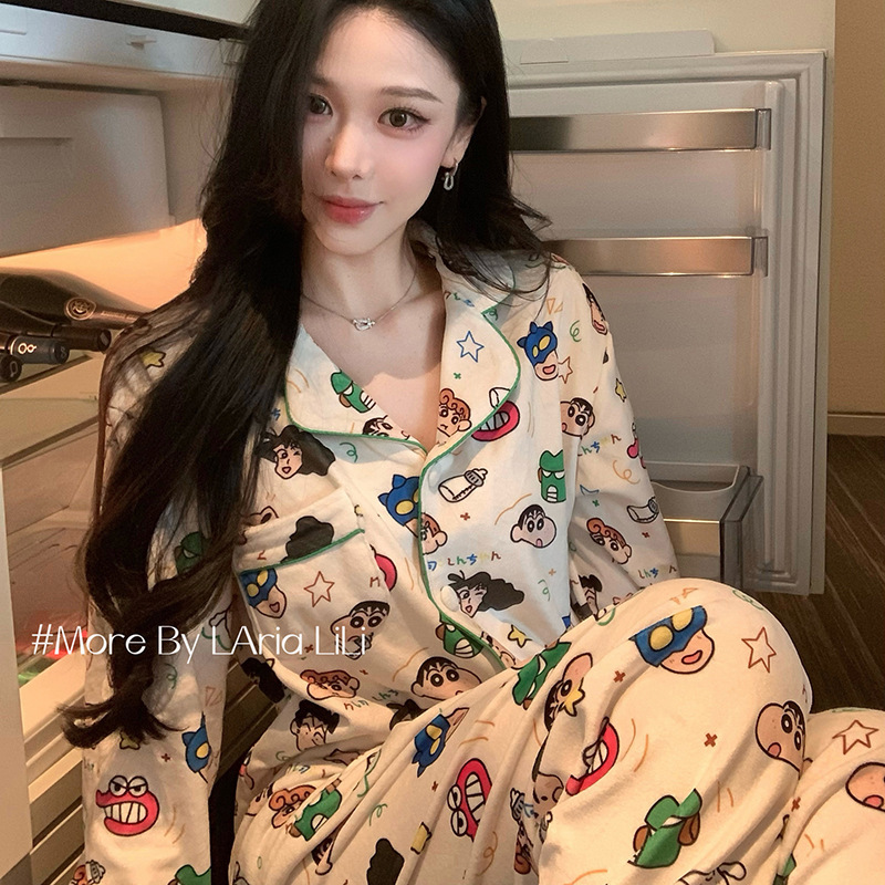 2025新款蜡笔小新冰丝睡衣女卡通长袖两件套装春秋季可外穿家居服