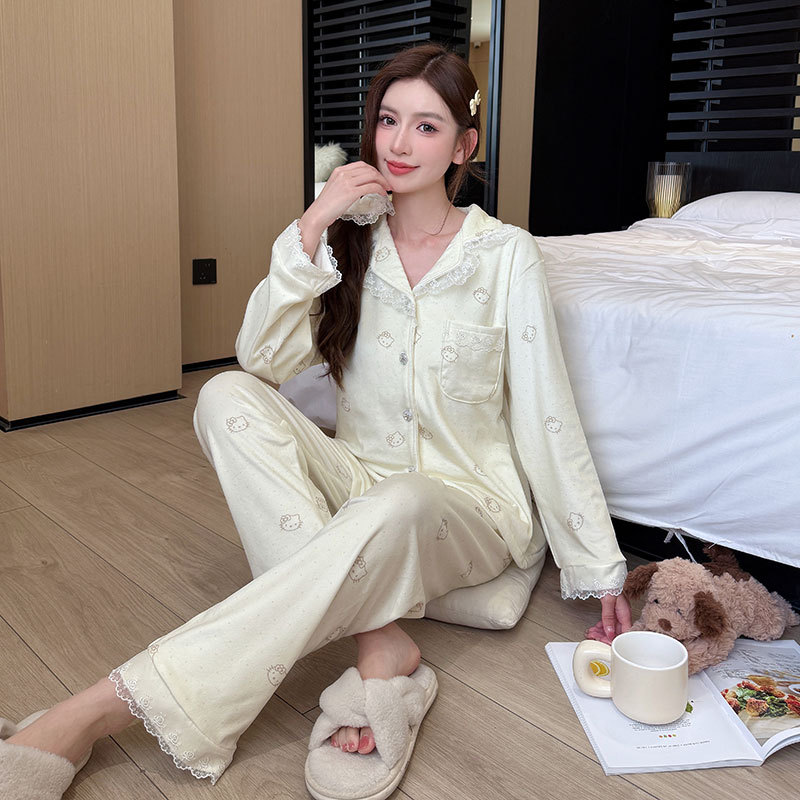hellokitty睡衣女款2025新款秋季长袖海岛绒高级感花边韩版家居服