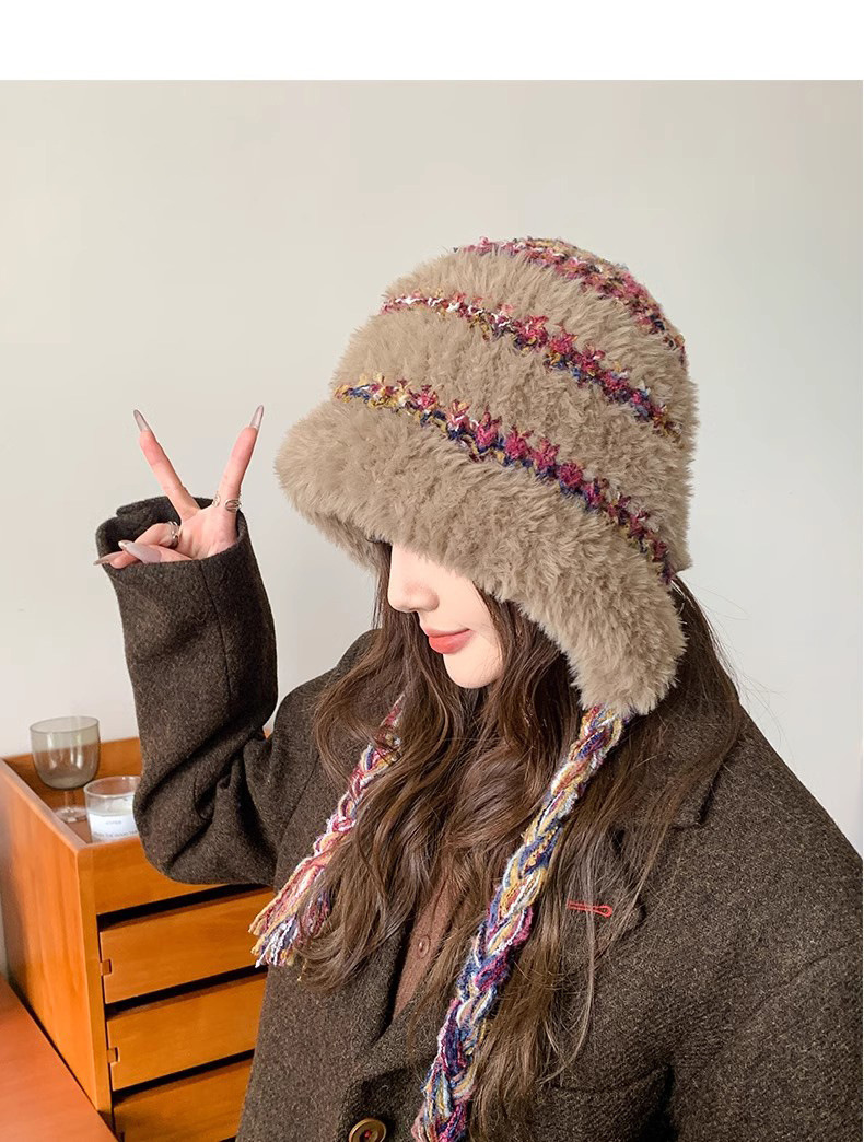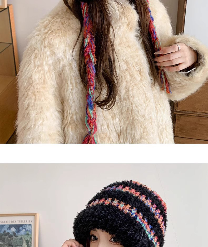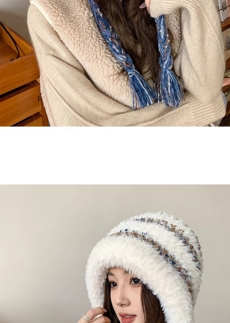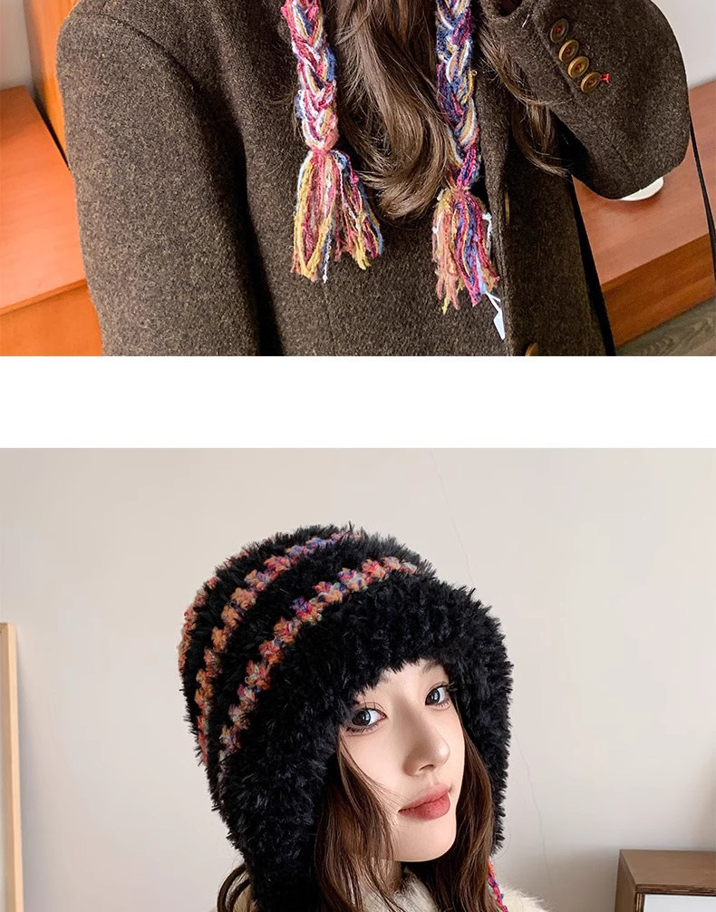 毛绒绒条纹帽子女显脸小针织帽保暖韩版可爱护耳毛线帽逛街大头围