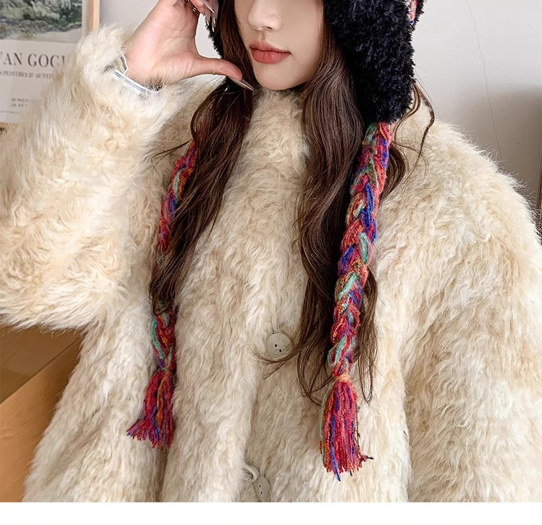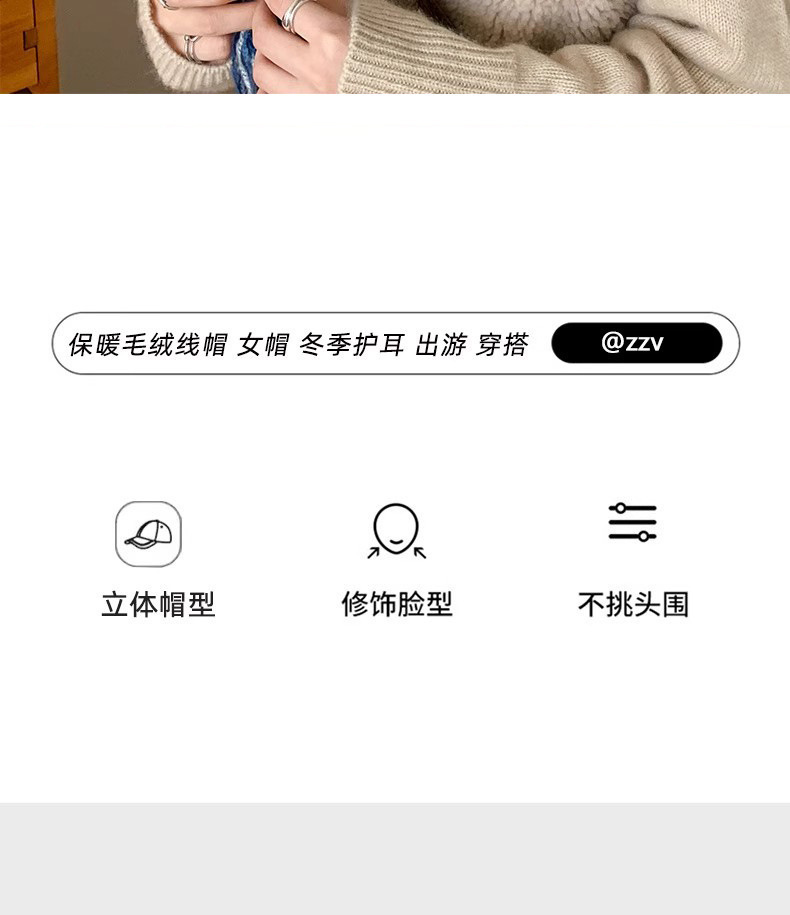 可爱毛绒帽子女冬季加绒针织毛线帽护耳保暖毛茸茸东北防寒雷锋帽