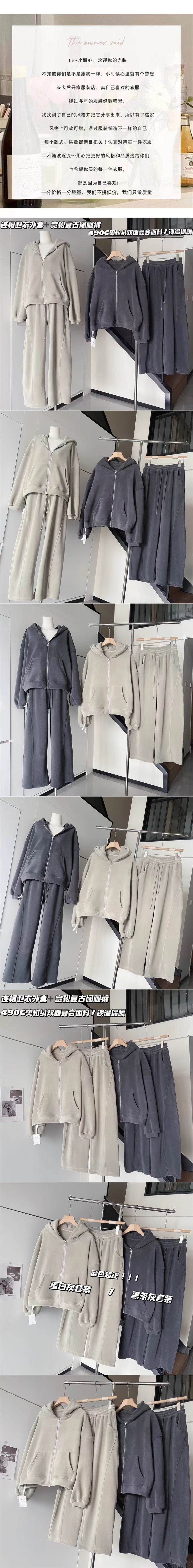 美式慵懒风灰色加绒卫衣套装加厚双面奥粒绒连帽oversize宽松休闲