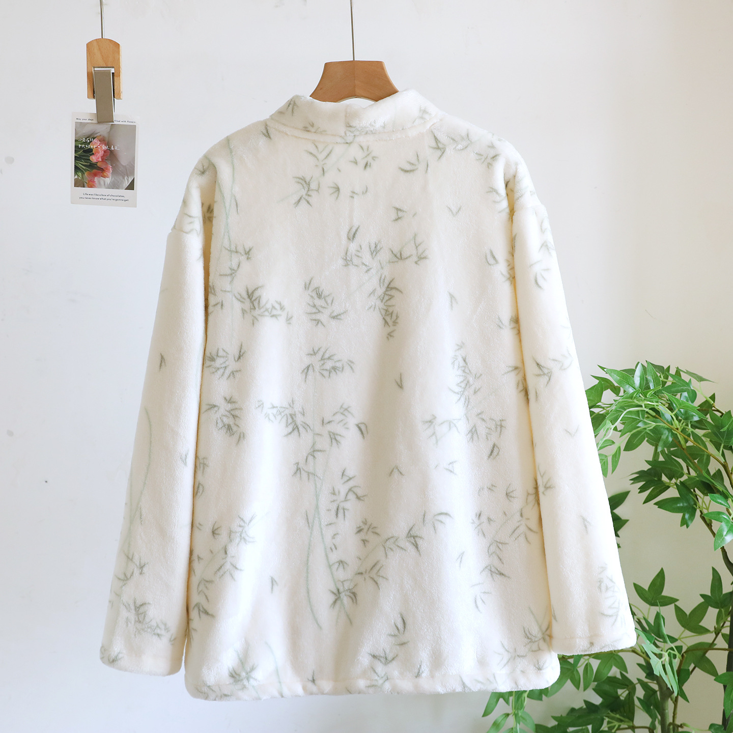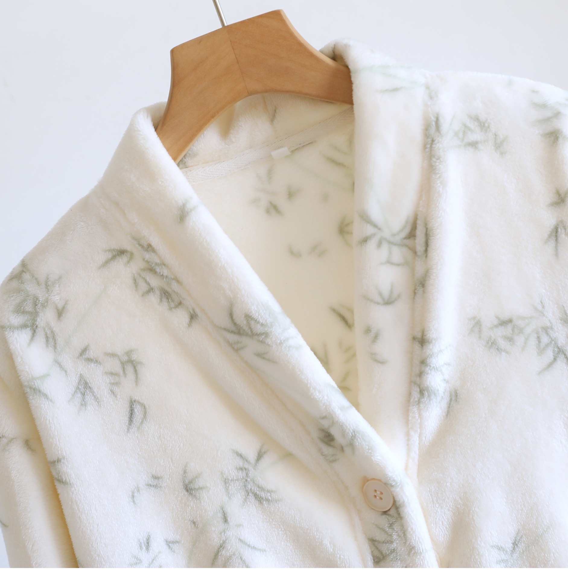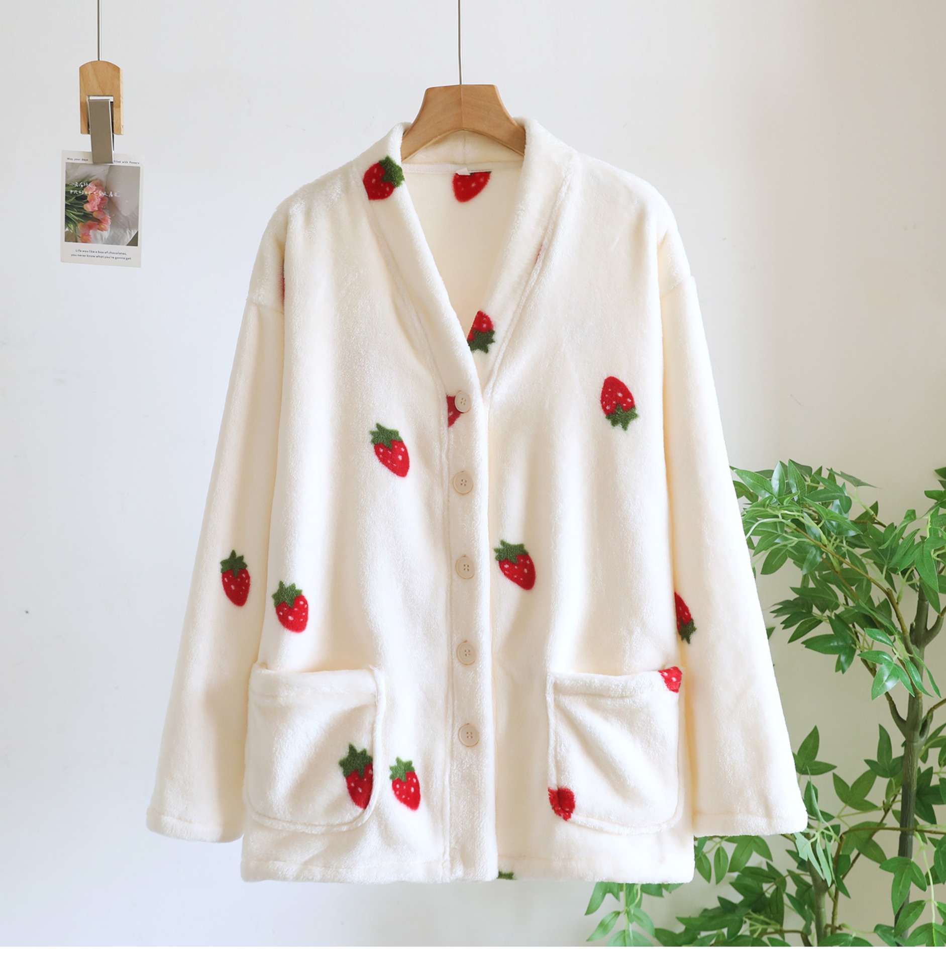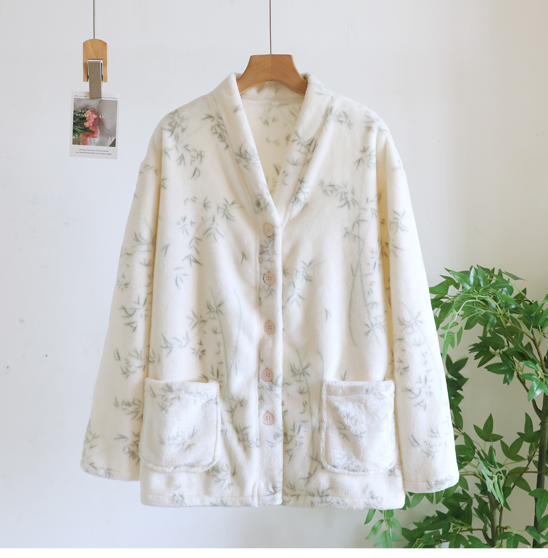 秋冬フランネルの上着の女性は保温のワンピースのパジャマの長袖のカーディガンを厚くします。