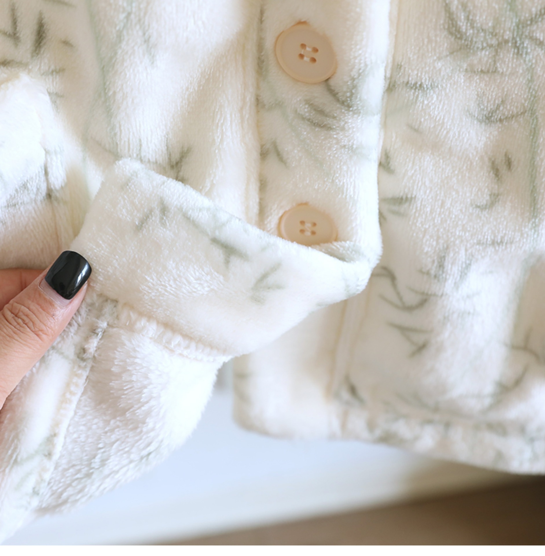 ワンピース上着綿質空気層パジャマ女性秋冬厚手綿長袖長ズボンカーディガン部屋着幅