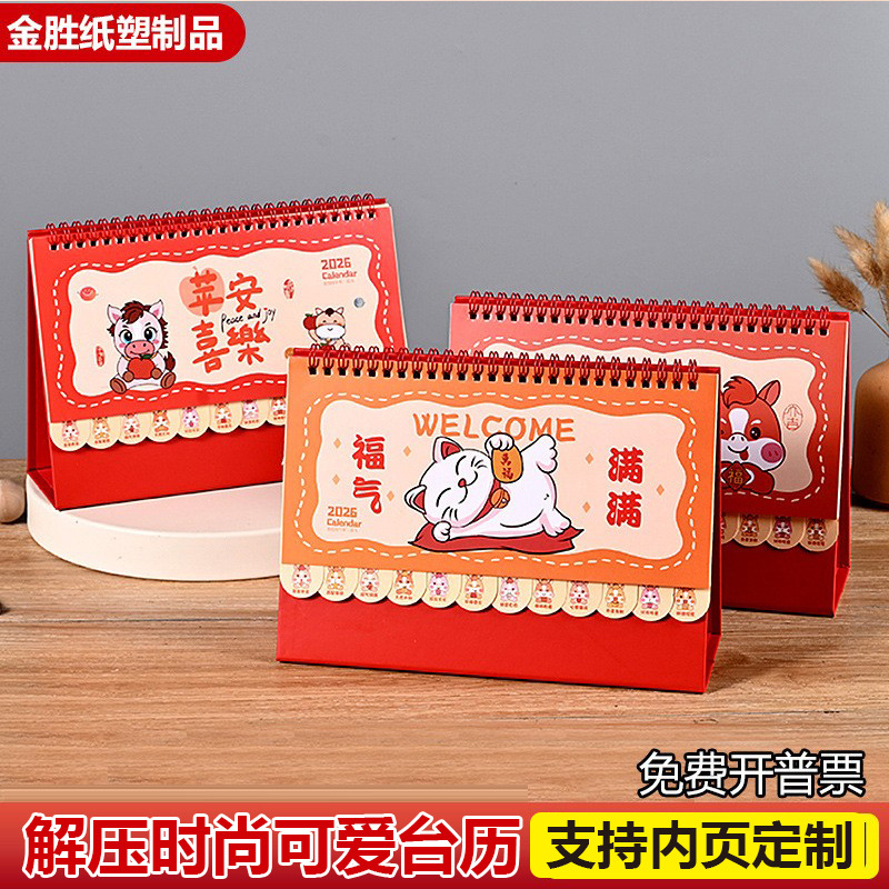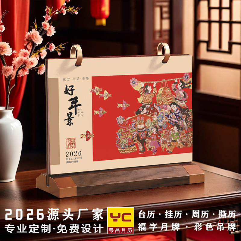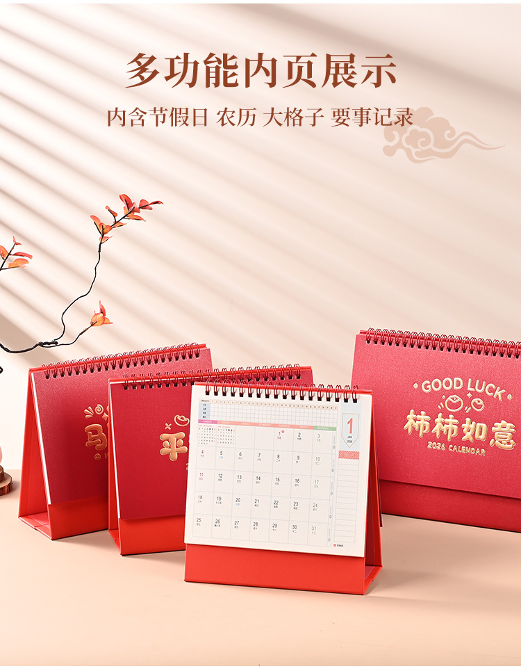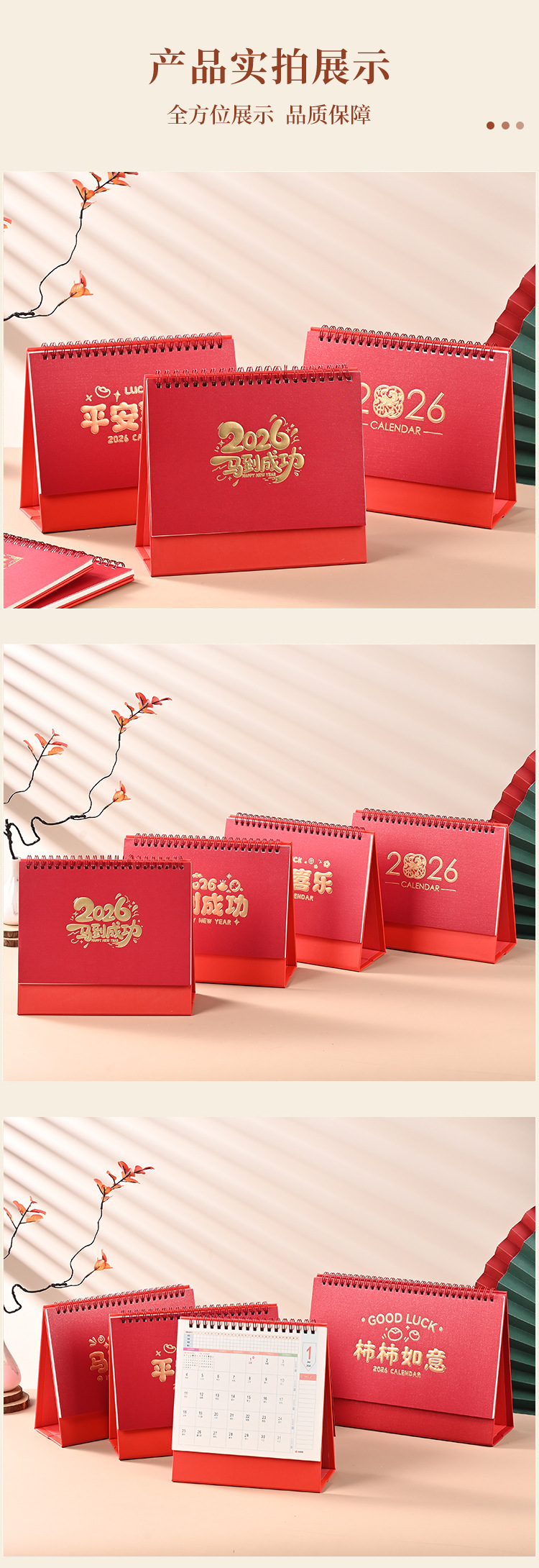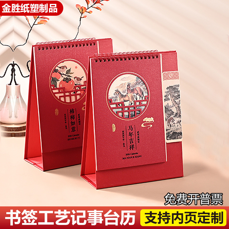 台历2026年新款日历计划本定做中国风月历竖款喜庆创意办公桌摆件