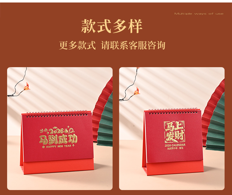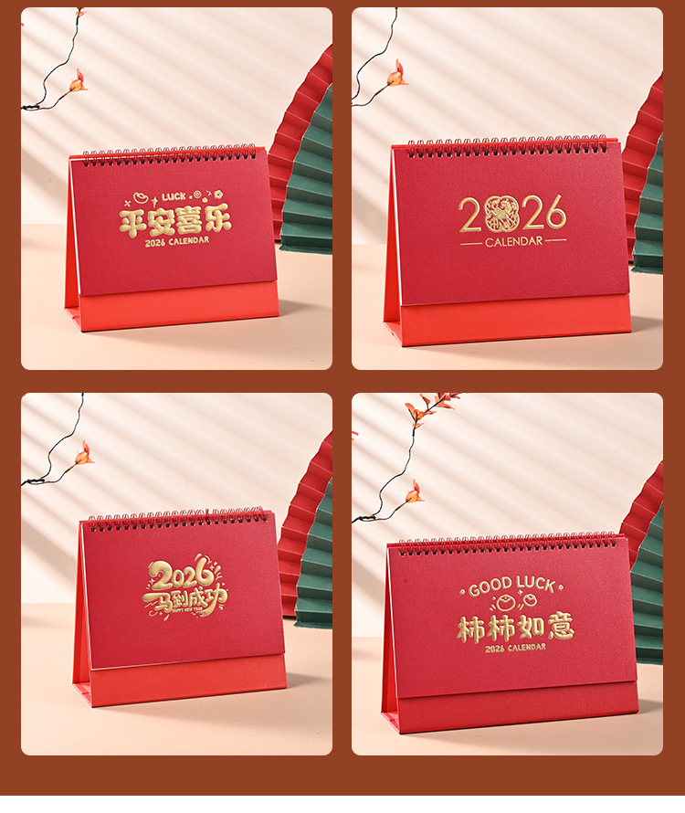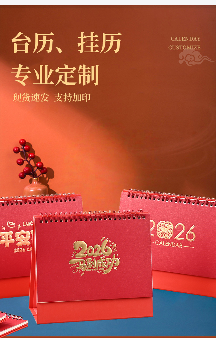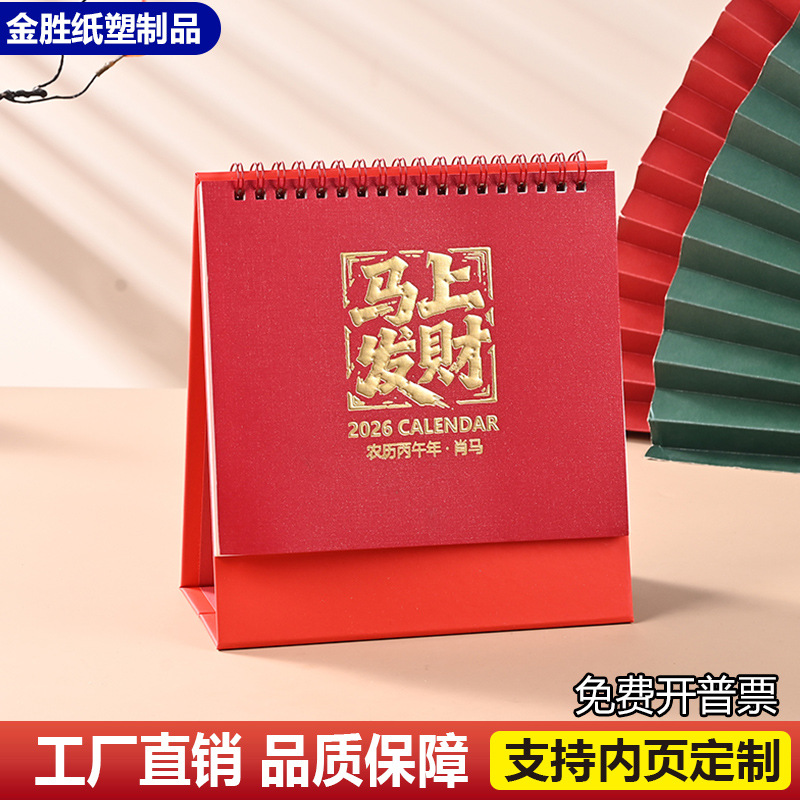 马年国风台历定制2026年红色烫金日历摆件过年企业纪念伴手礼品