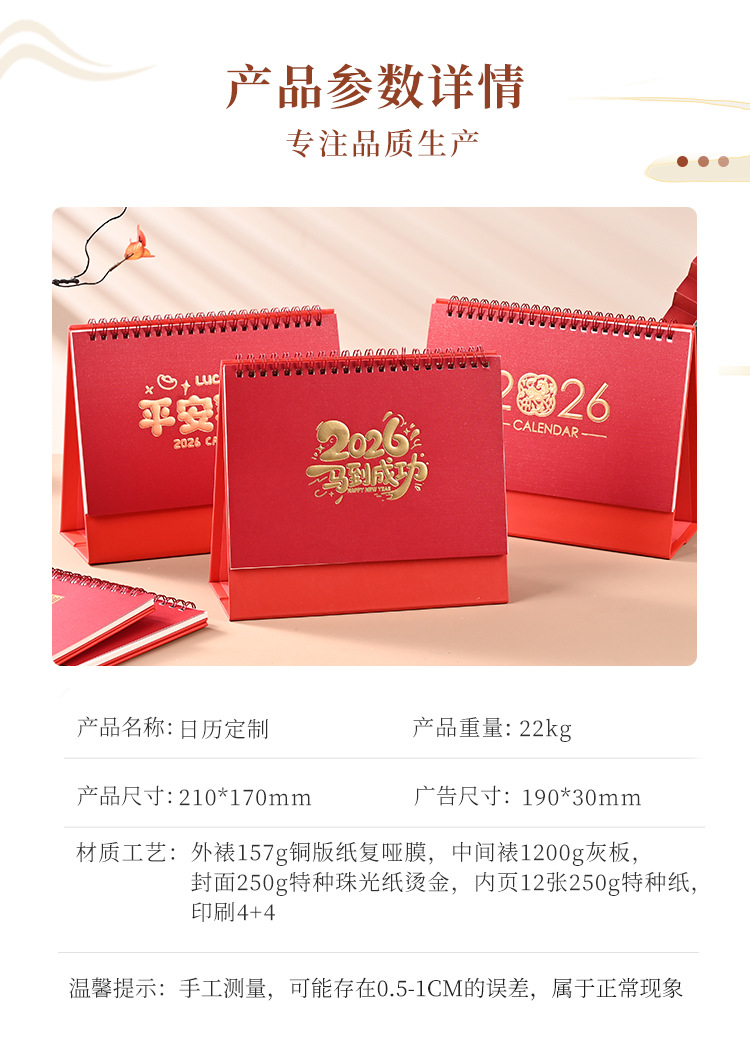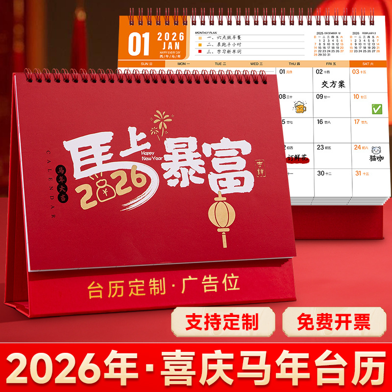 日历2026马年新款台历商务办公定制专版台历月历广告宣传桌面摆件
