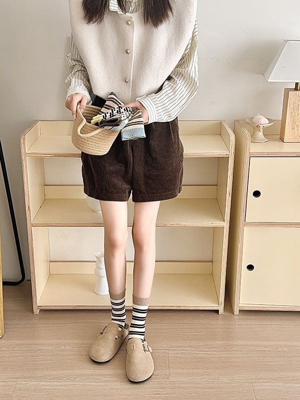 秋冬ins复古棕色撞色条纹袜子女中筒袜韩系拼色水貂绒保暖堆堆袜