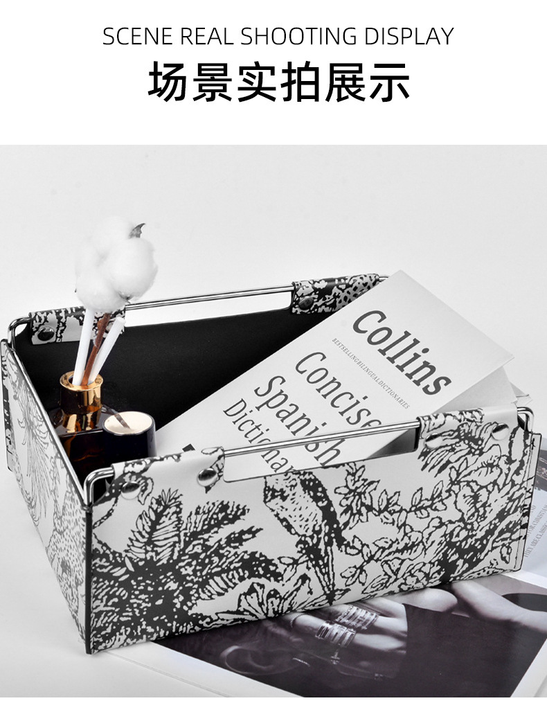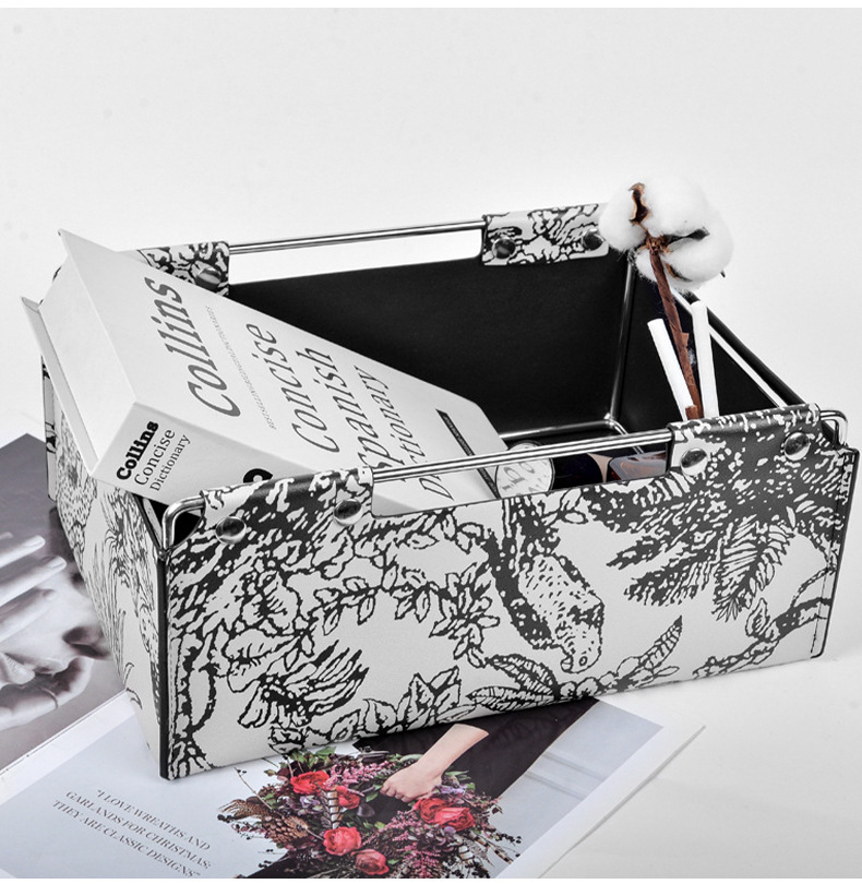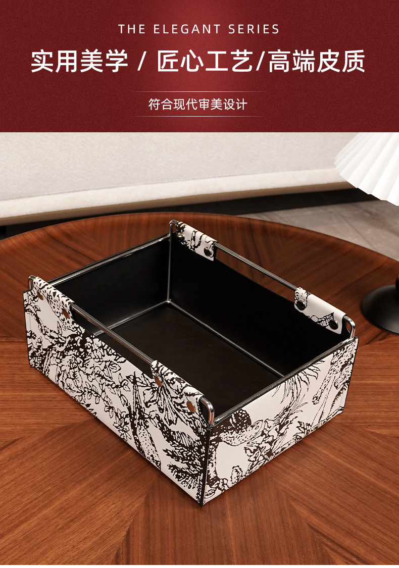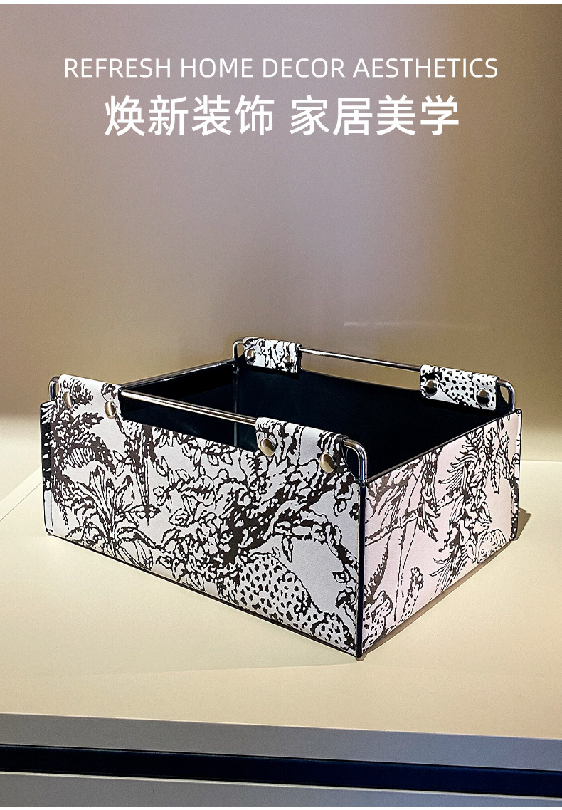 复古法式创意玄关柜收纳盒收纳筐框家居收纳皮革轻奢高级整理盒