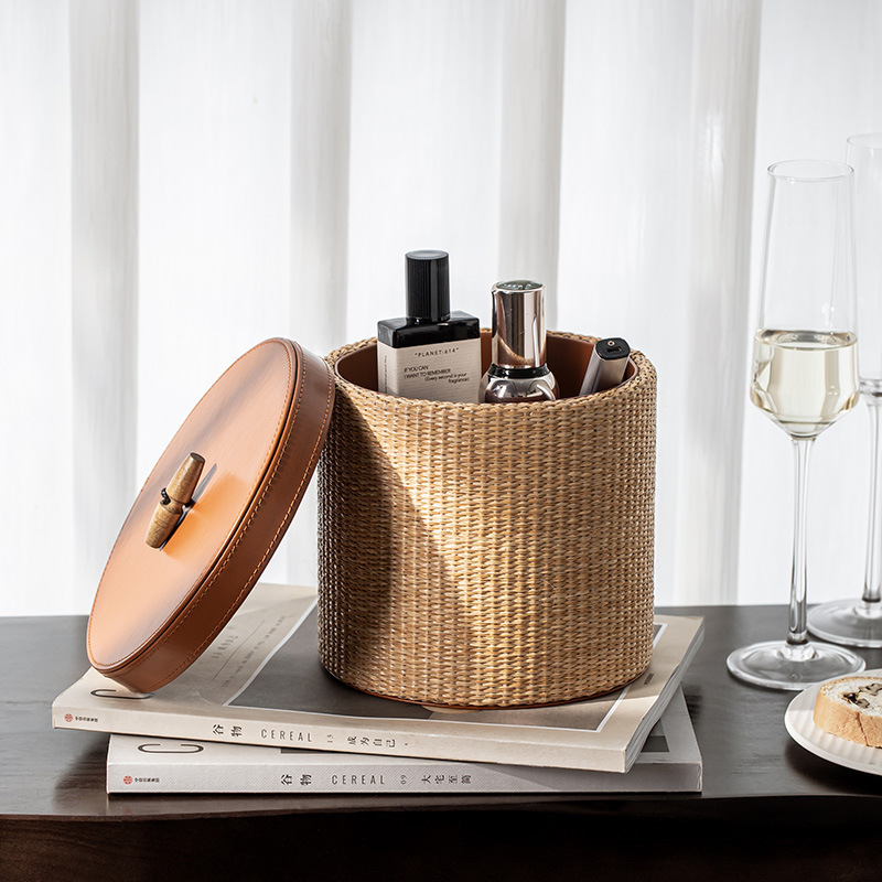 复古收纳桶带盖家用民宿桌面化妆品杂物装饰储物盒收纳桶高级感