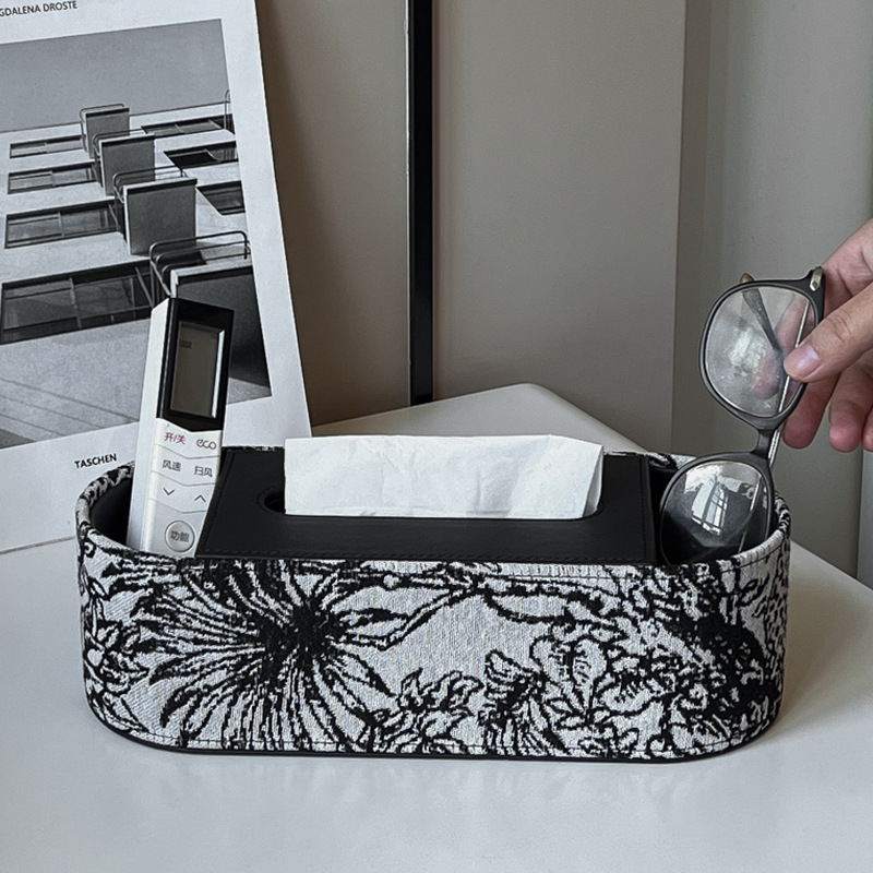 レトロなジャカードティッシュ箱リビングルームの高級フランス布芸引き出し紙箱多機能リモコン収納箱