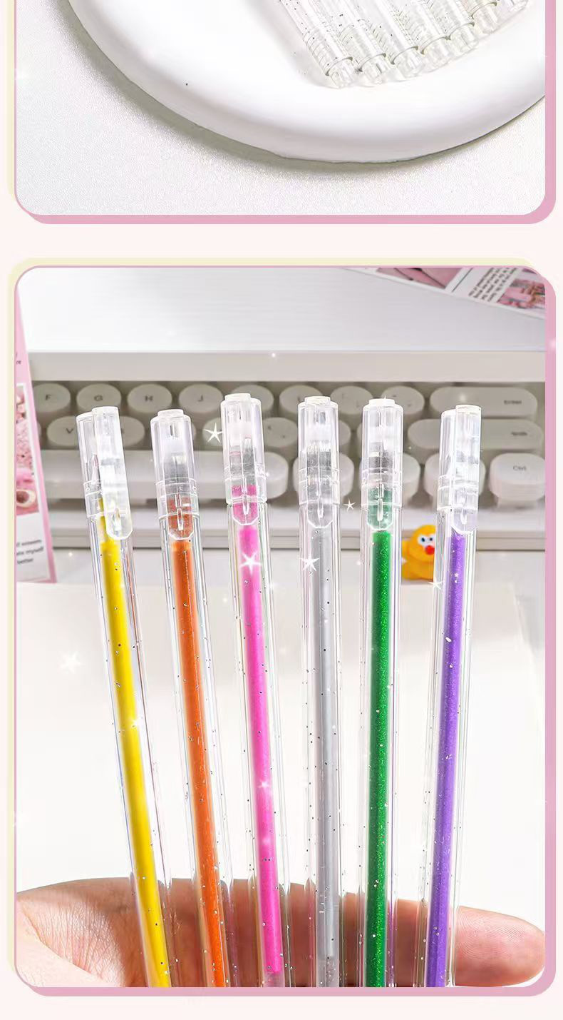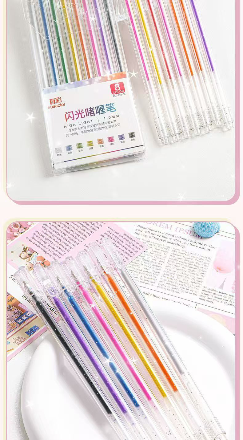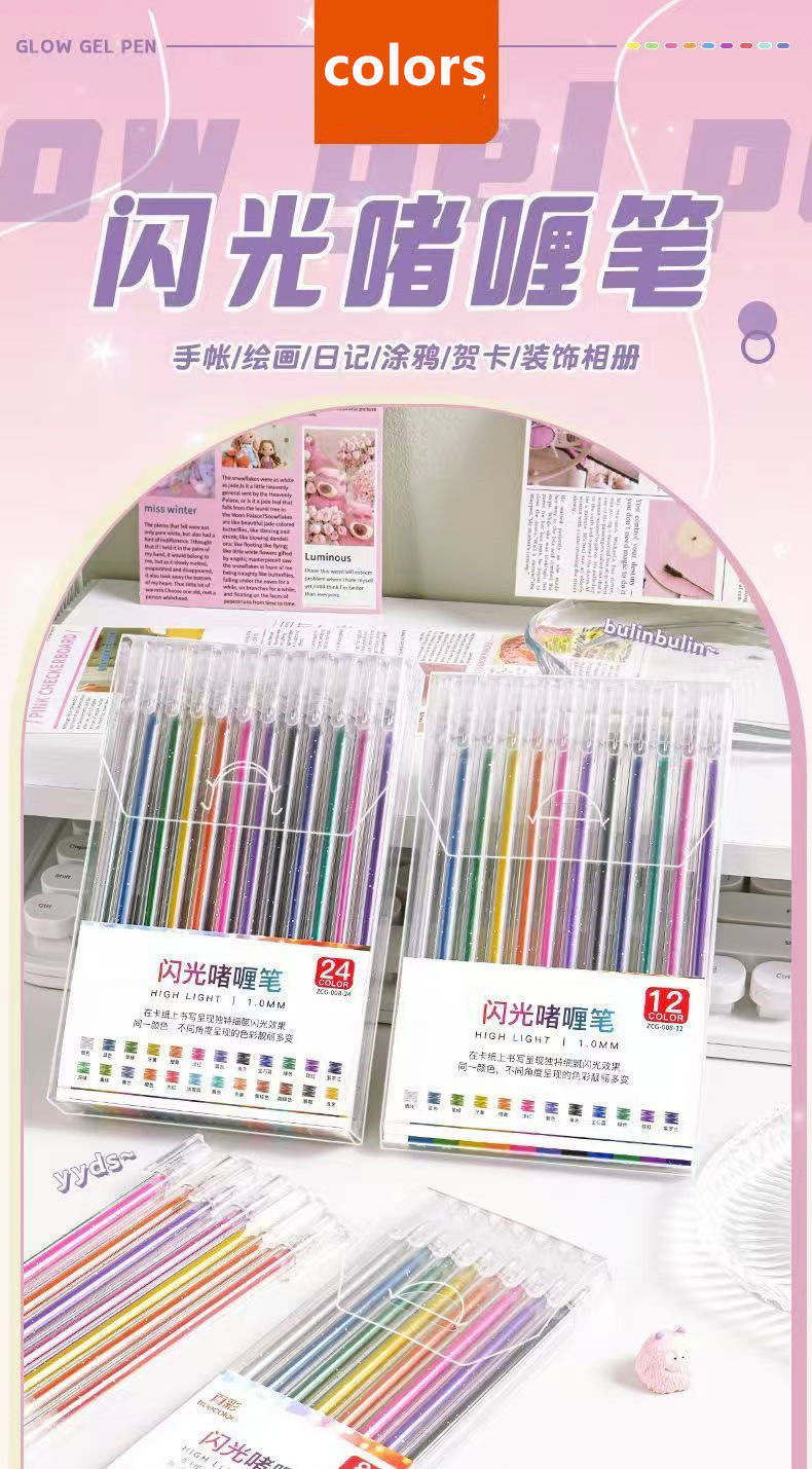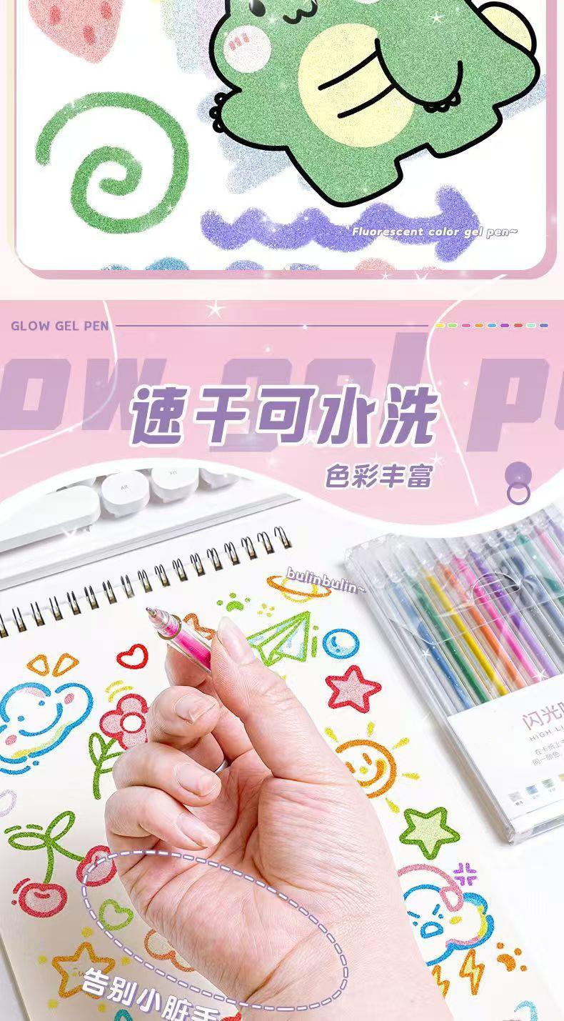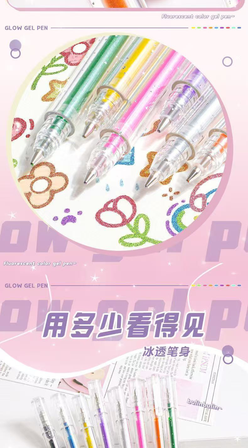 跨境爆闪金属彩色闪光啫喱笔学生高光绘画手账笔流沙亮晶晶荧光笔