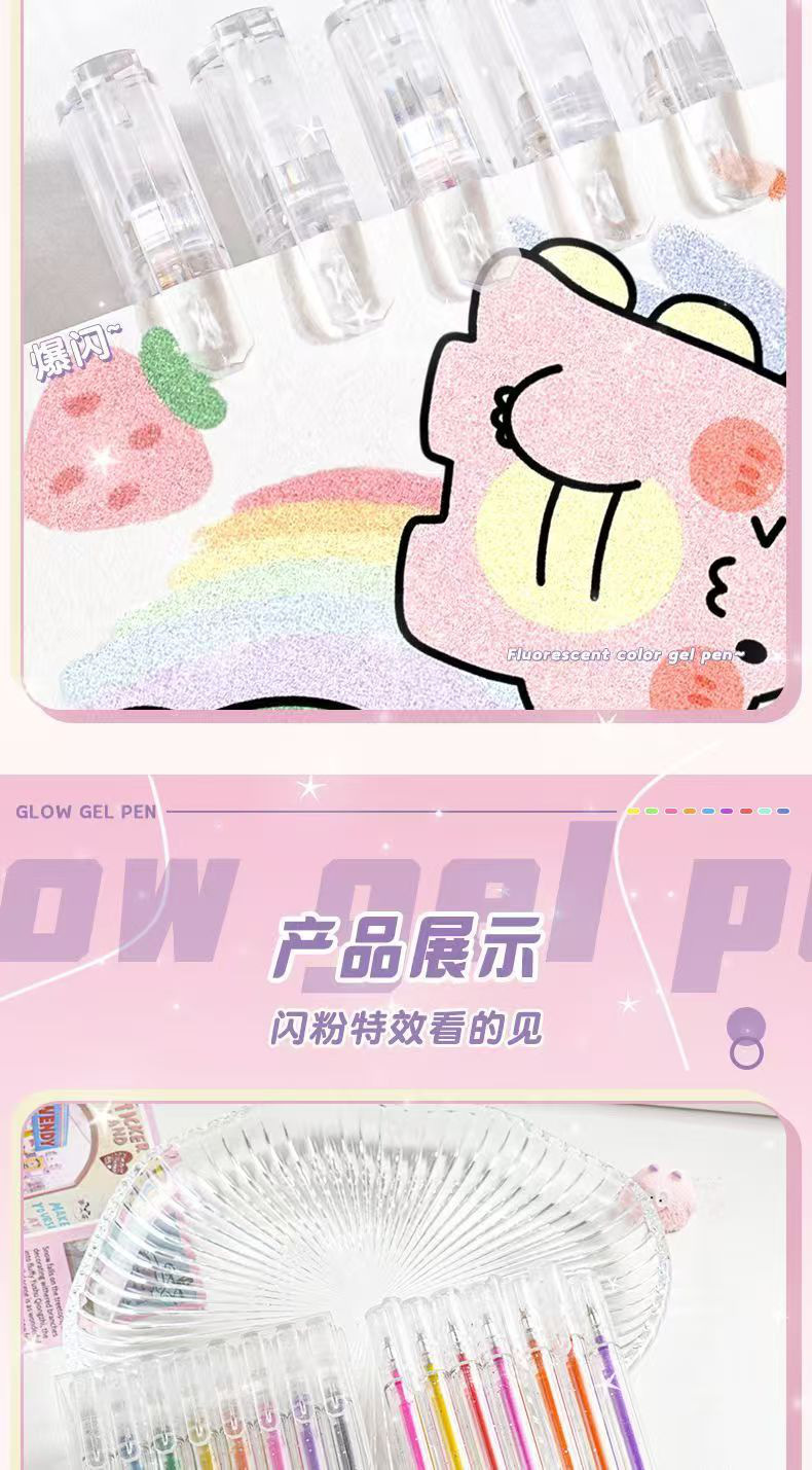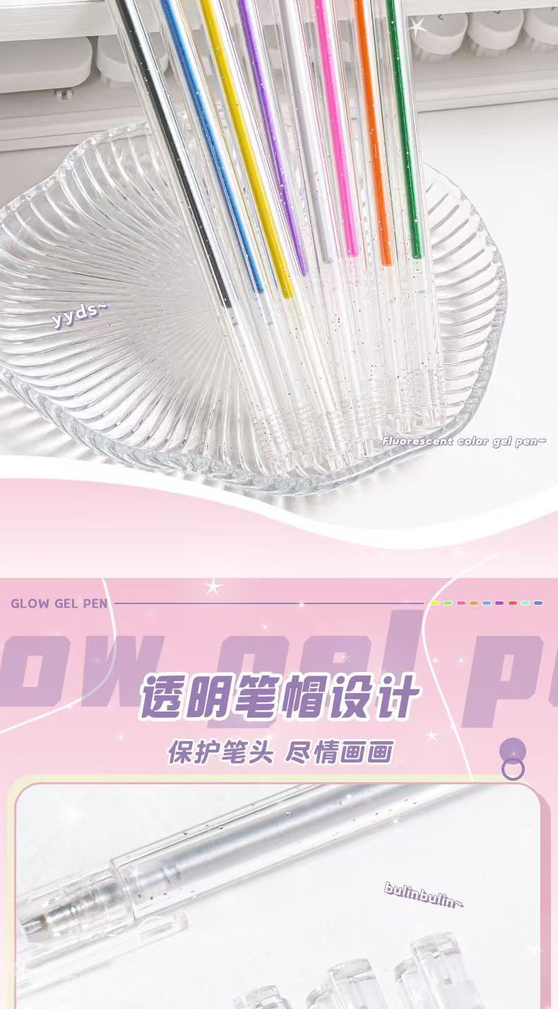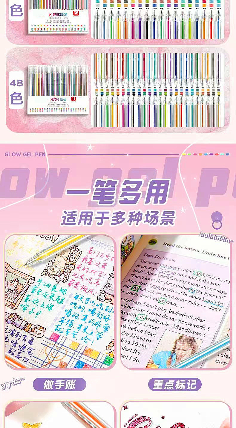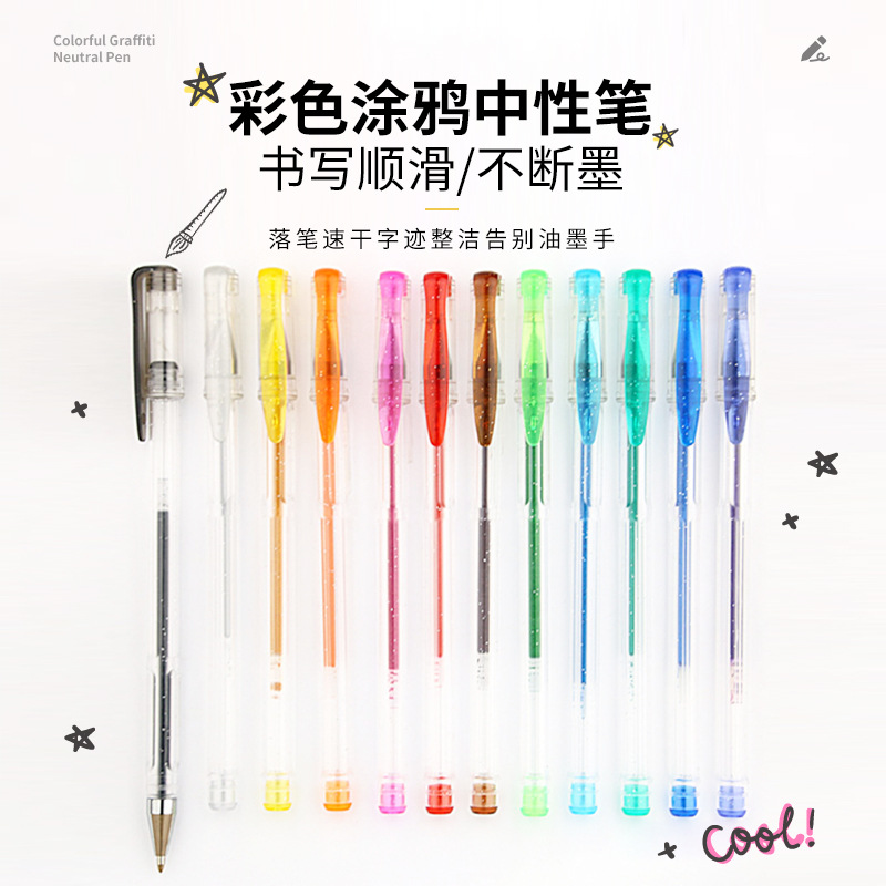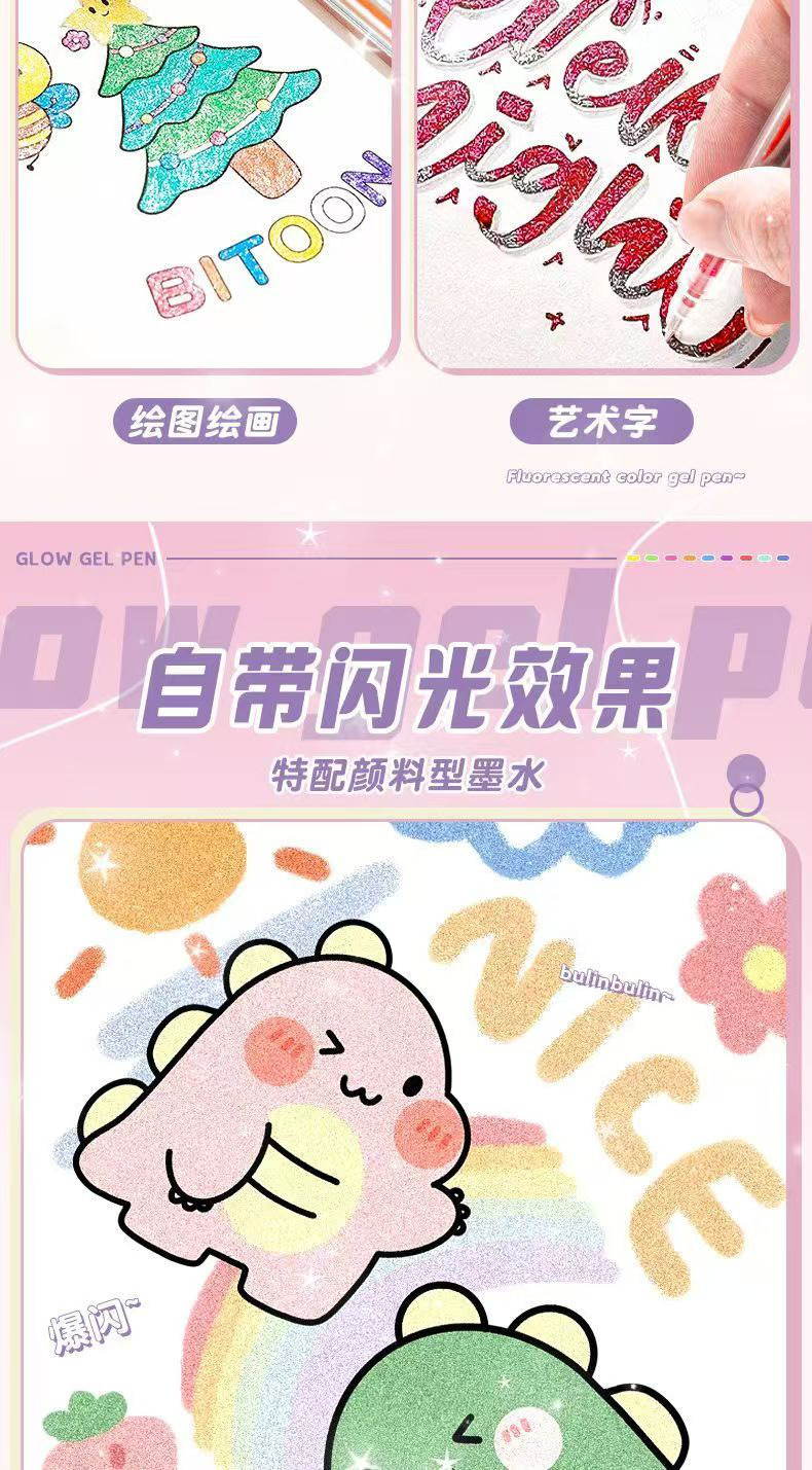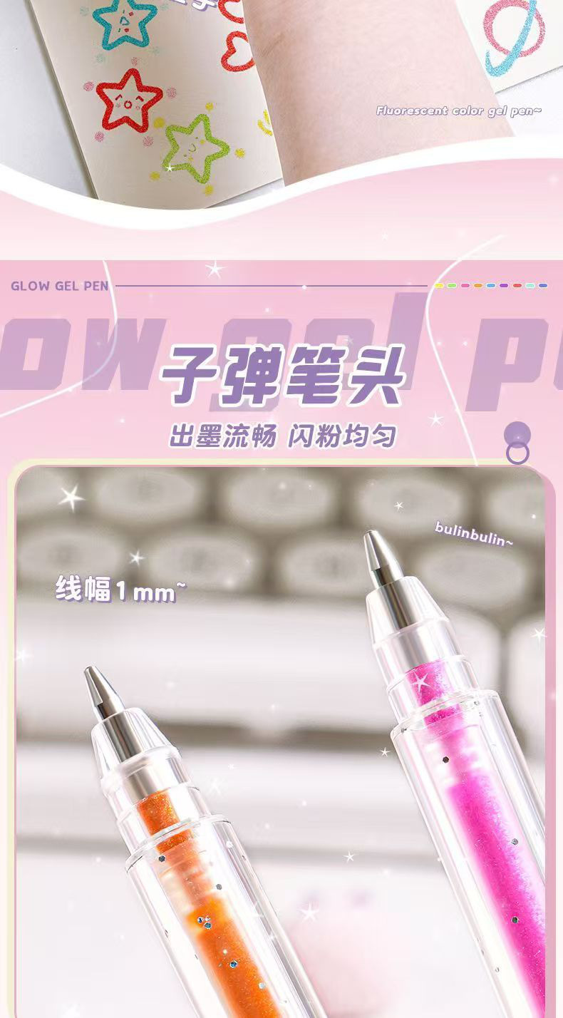 跨境爆闪金属彩色闪光啫喱笔学生高光绘画手账笔流沙亮晶晶荧光笔