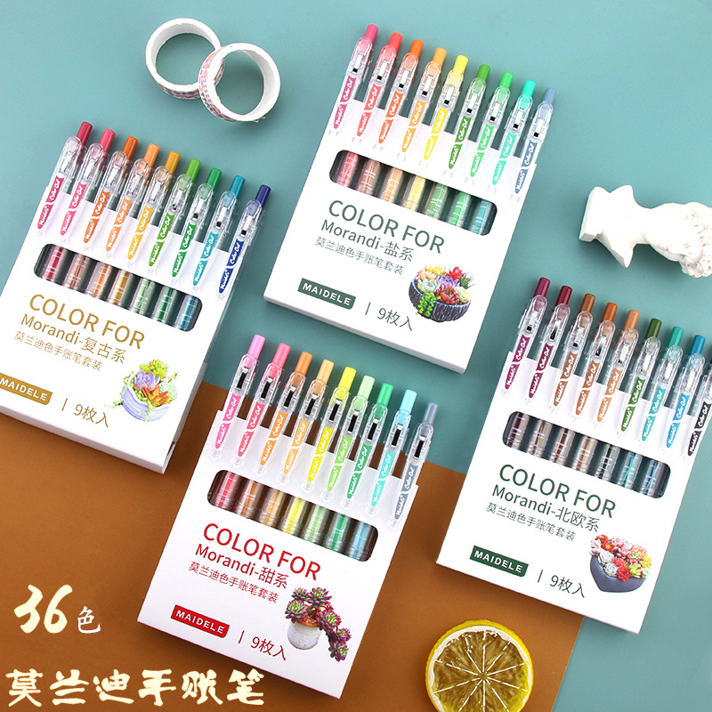 モランディカラーは手帳ペンの中性ペンセットを押します。