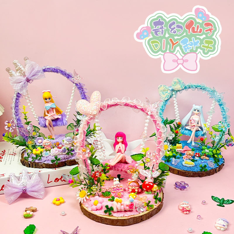 批发diy儿童手工制作材料包秋千小夜灯摆件女孩益智玩具DIY秋千