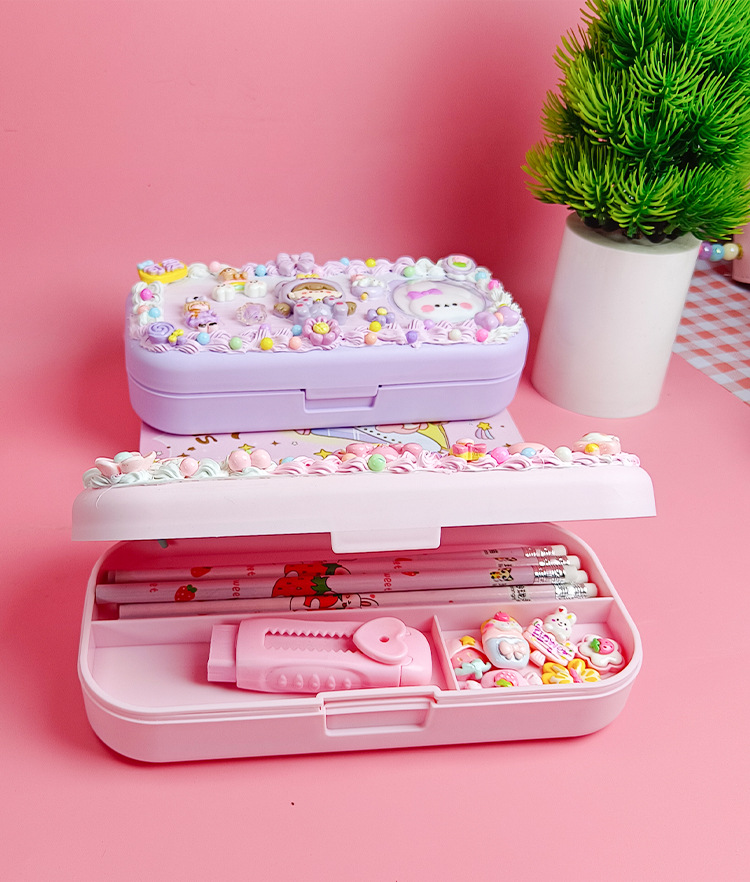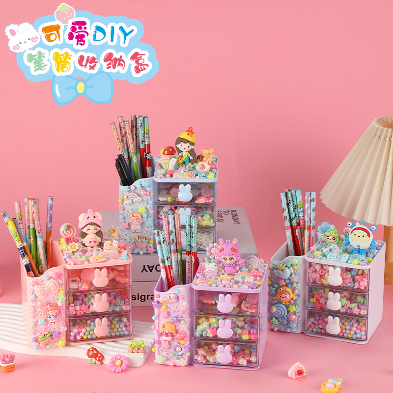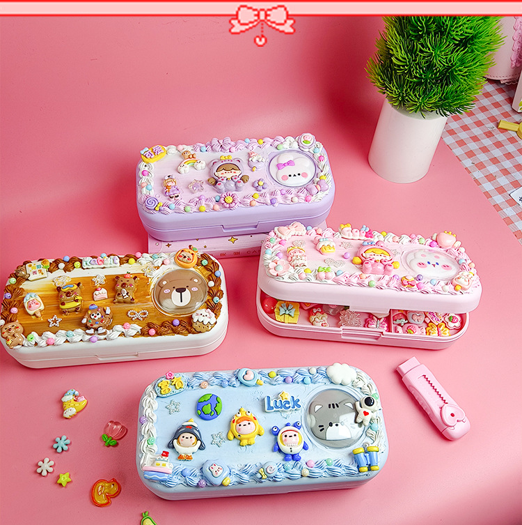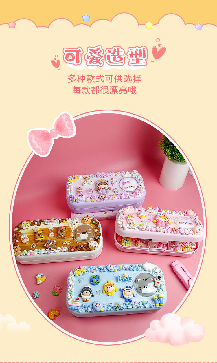 diy铅笔盒材料全套手工自制学生男女孩儿童节日礼物奶油胶文具盒