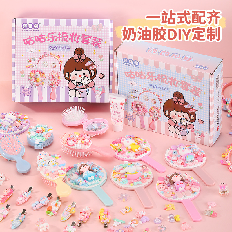 萌え稚園児童クリームゴムセットヘアクリップ櫛鏡女の子手作りdiy玩具材料シール
