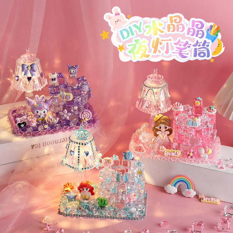 子供のDIYのステッカーの小さい夜の明かりの材料は夜の明かりの筆筒の夢幻の王女の水晶の明かりの透明な氷の筆立てを包みます。