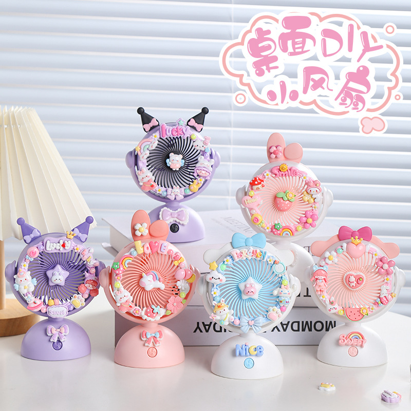新しい子供diyクリームゴム手作り小さなファン材料バッグ充電式デスクトップかわいいファンおもちゃ