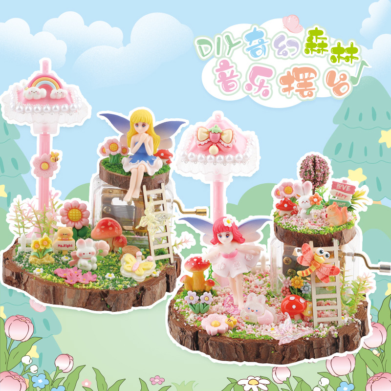 子供DIY創作手揺オルゴール電気スタンド夜灯童話音楽森ファンタジー森音楽置物台