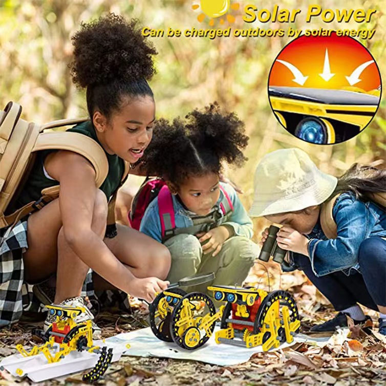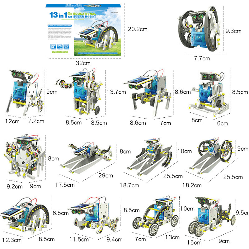 跨境热卖DIY拼装玩具 十三合一自装太阳能玩具车 13合1智能机器人