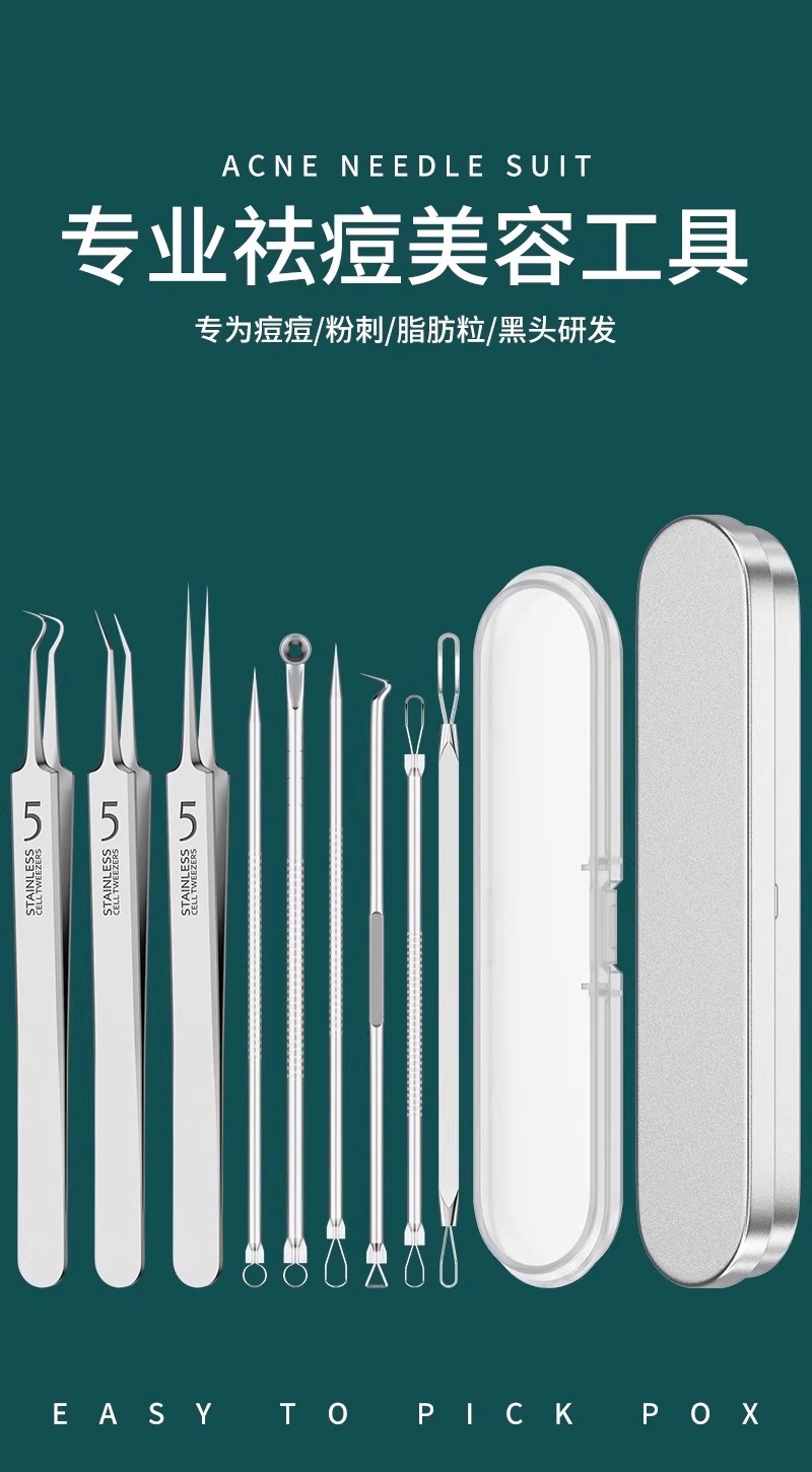 不锈钢粉刺针套装挤痘工具去黑头镊子超细闭口挑暗疮美容细胞夹