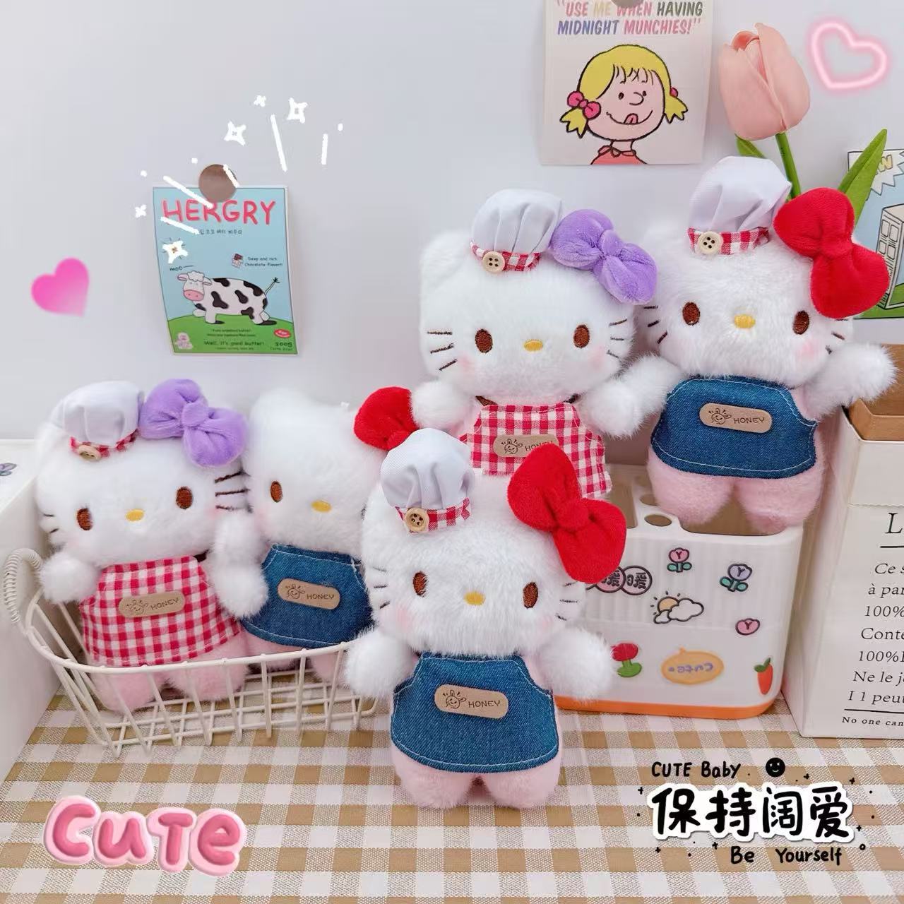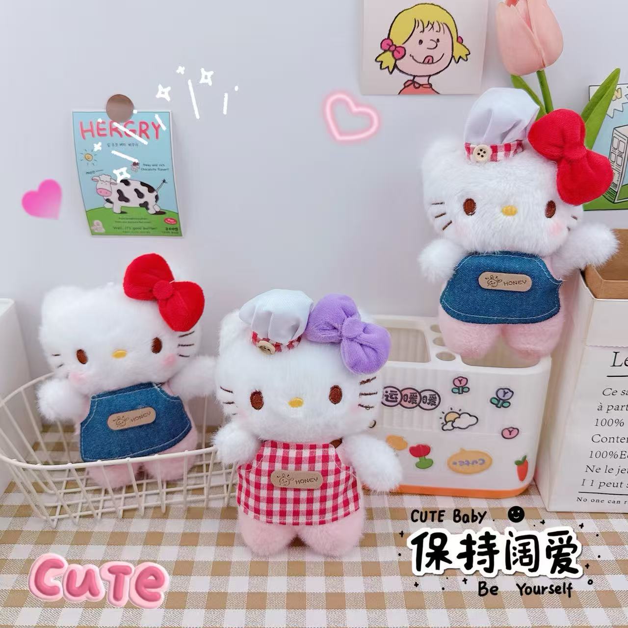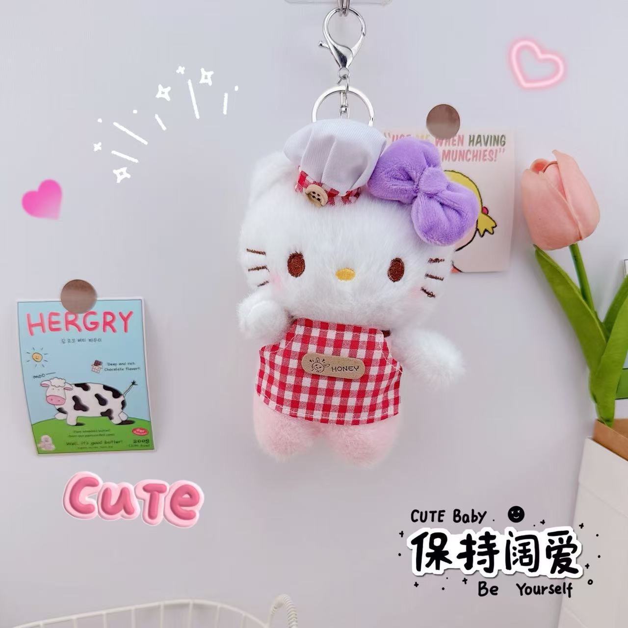 厨师凯特猫钥匙扣挂件毛绒公仔玩偶少女心厨师凯特猫挂件书包挂饰