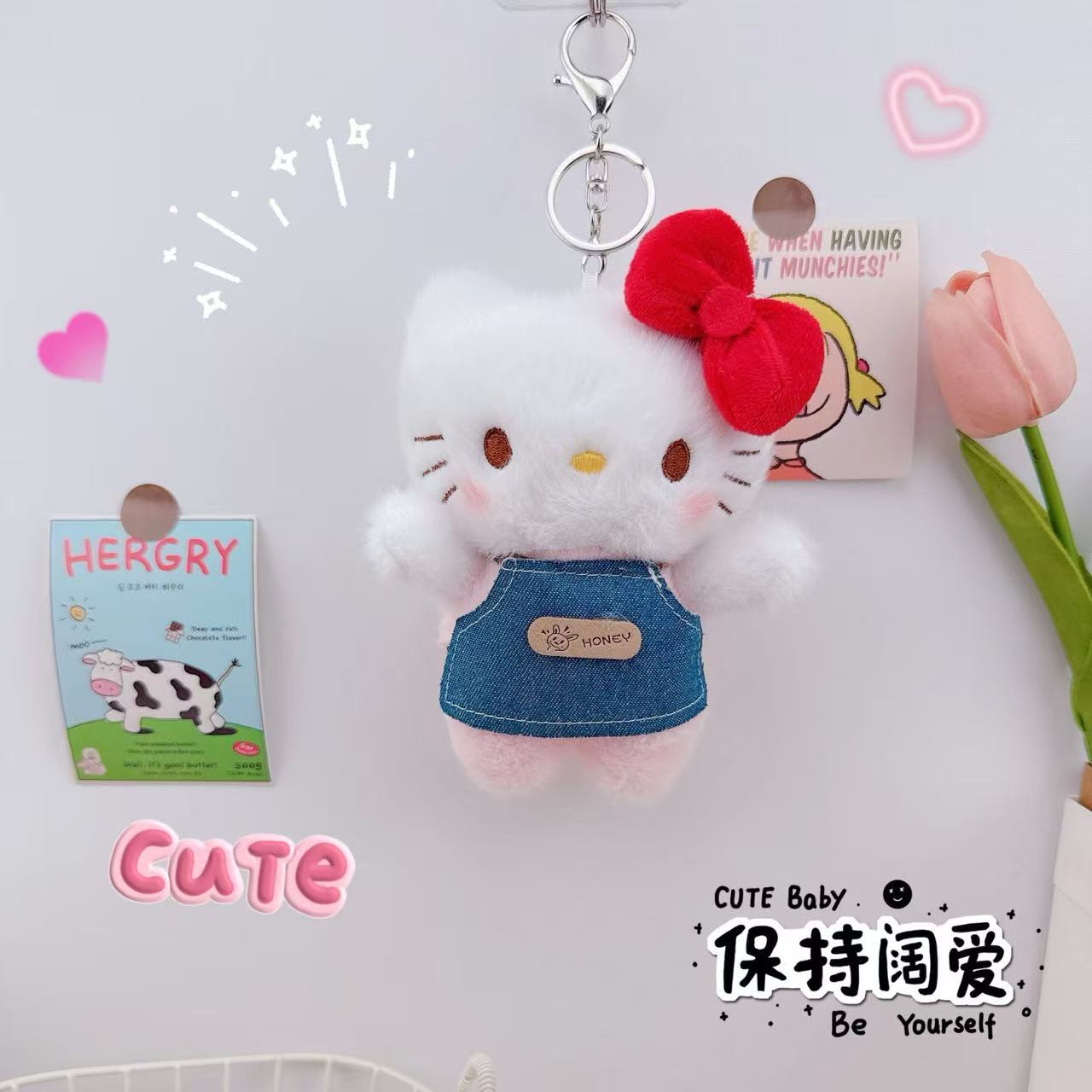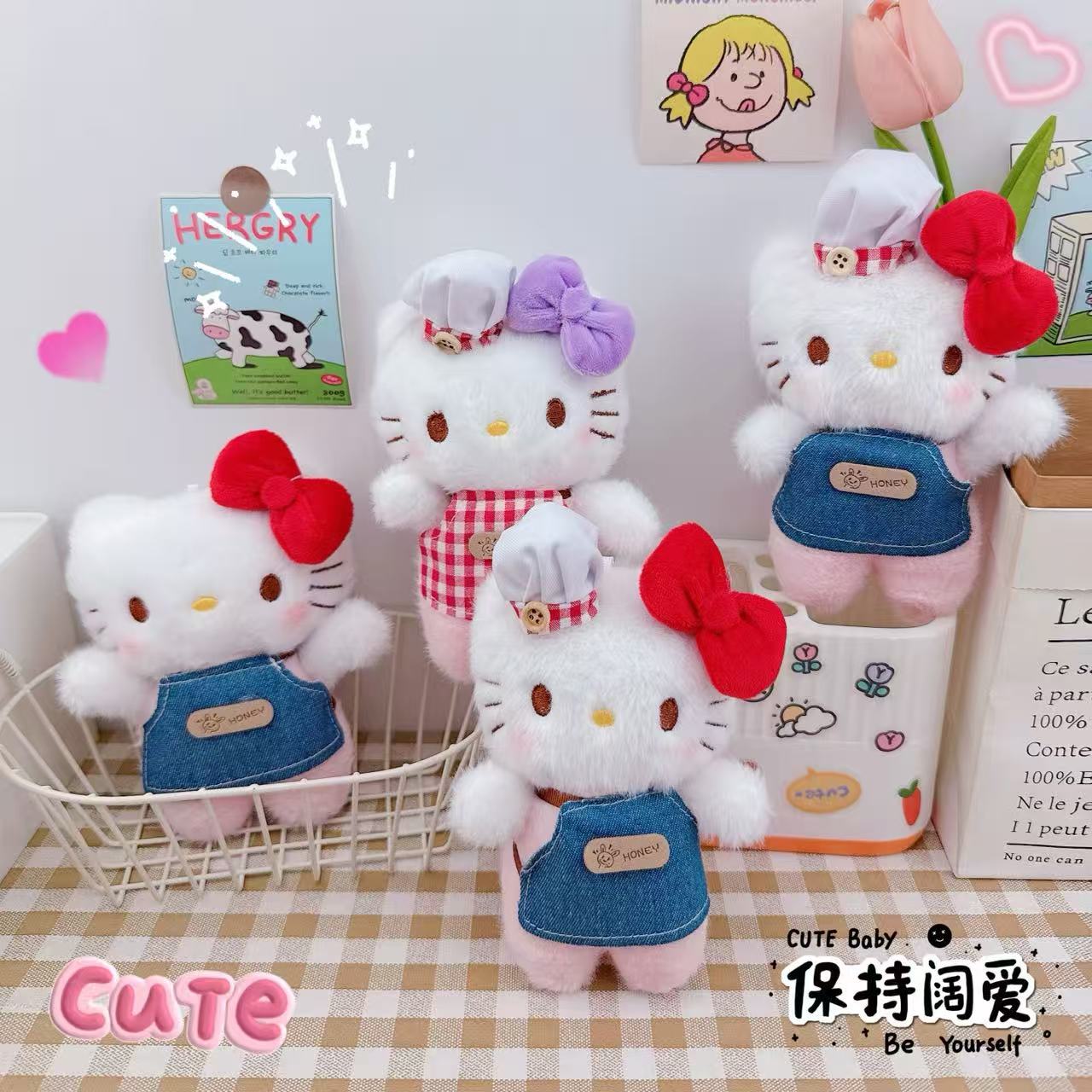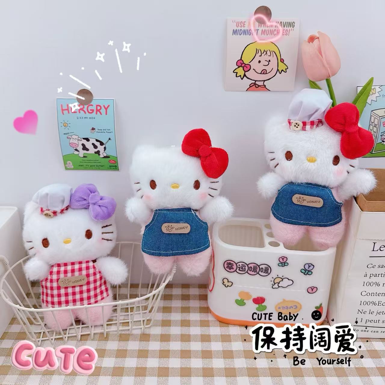 厨师凯特猫钥匙扣挂件毛绒公仔玩偶少女心厨师凯特猫挂件书包挂饰