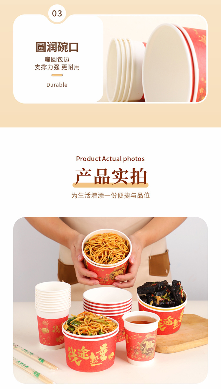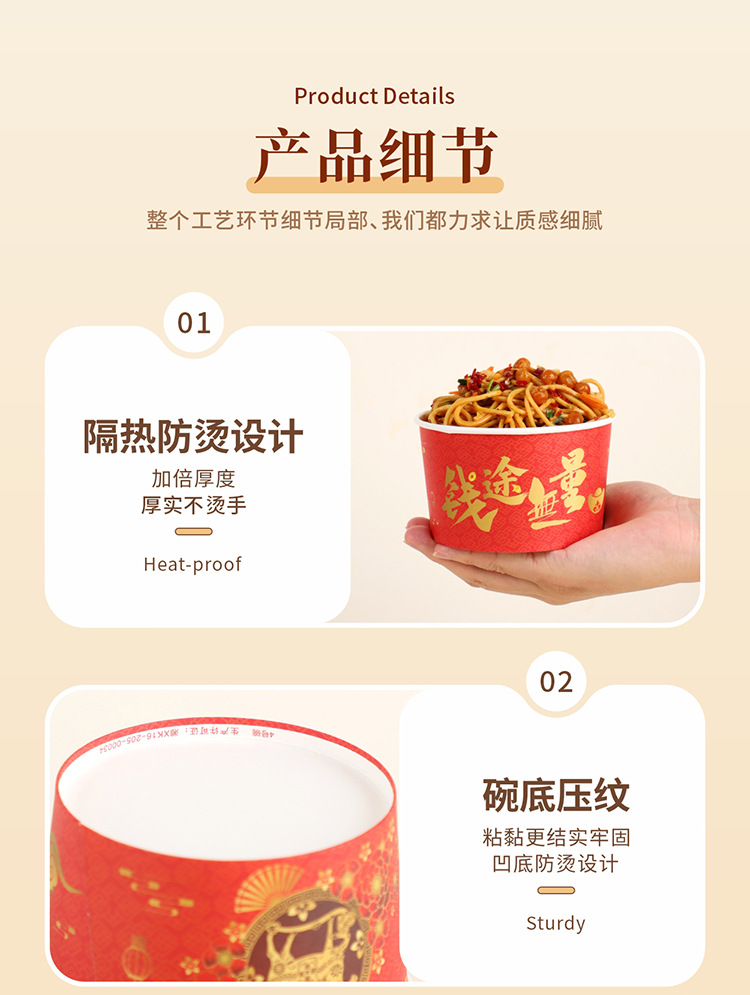 厚手の使い捨て紙碗新年の誕生日の宴会家庭用会食満月の酒席のお祝い碗の赤い包装箱