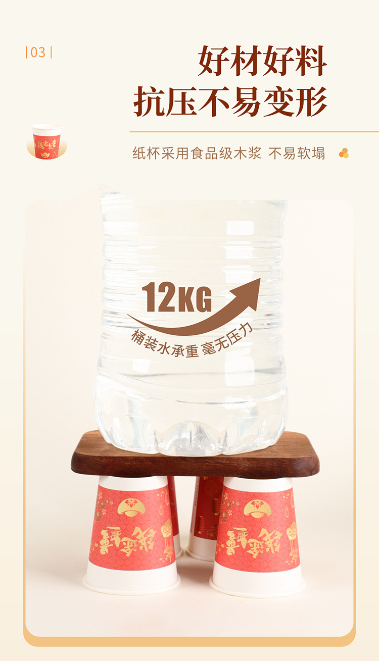 马年纸杯一次性本色竹纤维茶水杯办公商用加厚过年喜庆定制饮水杯