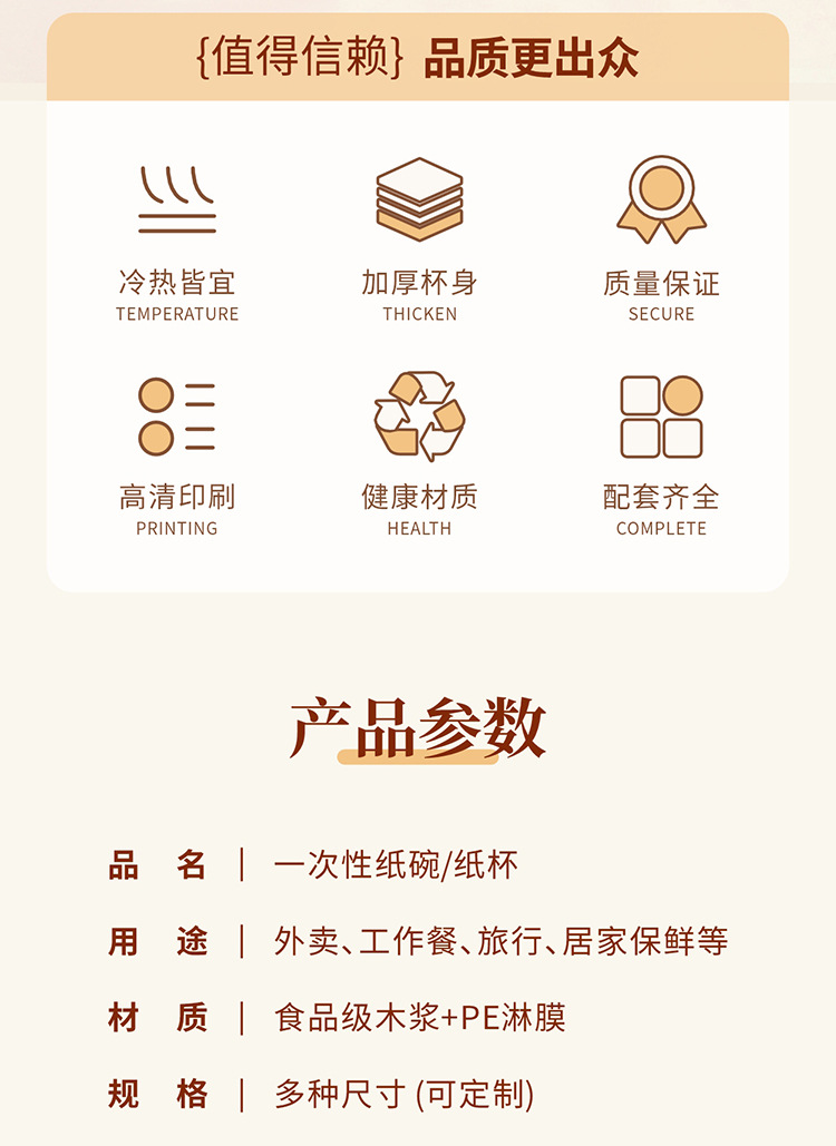 规格型号 【纸杯/纸碗定制】;1个;食品级木浆+PE淋膜,9A【马年钱途无量】纸杯;1个;食品级木浆+PE淋膜,4号【马年钱途无量】纸碗;1个;食品级木浆+PE淋膜,【马年钱途无量】9A杯+4号碗+筷子;1个;食品级木浆+PE淋膜,2号【马年钱途无量】纸碗;1个;食品级木浆+PE淋膜,【马年钱途无量】9A杯+2号碗+筷子;1个;食品级木浆+PE淋膜