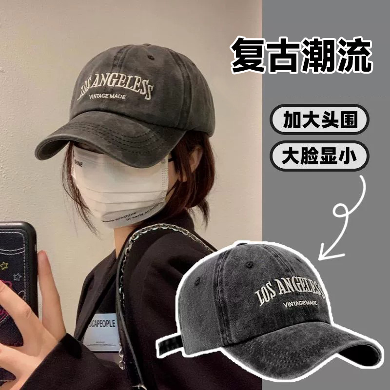 水洗做旧刺绣字母棒球帽情侣款美式大头围时尚休闲遮阳防晒鸭舌帽