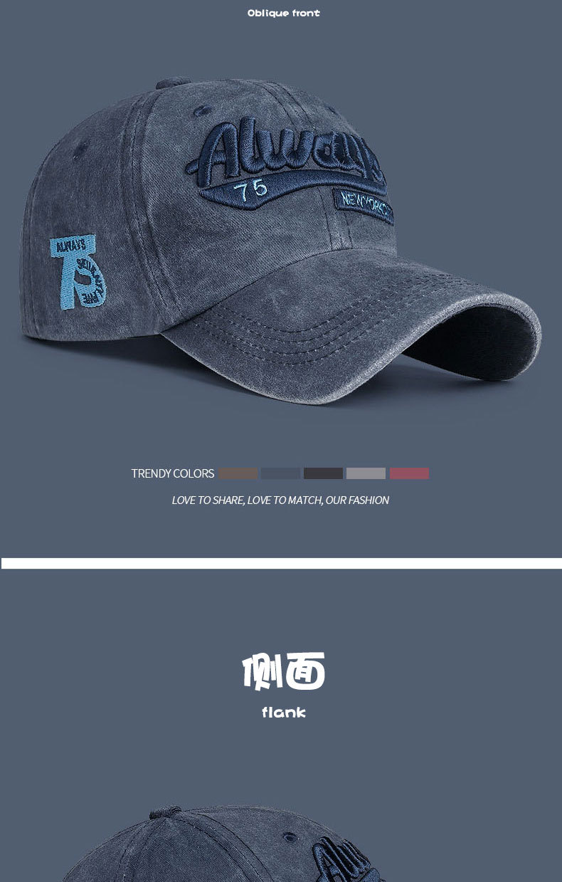 跨境帽子男潮韩版大码高顶牛仔棒球帽显瘦做旧款水洗棉刺绣鸭舌帽