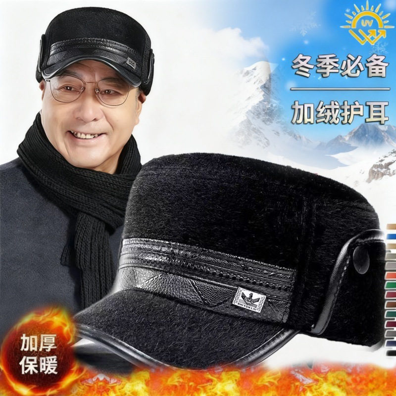 帽子男中老年人秋冬加厚保暖护耳平顶帽百搭休闲大头围防寒鸭舌帽
