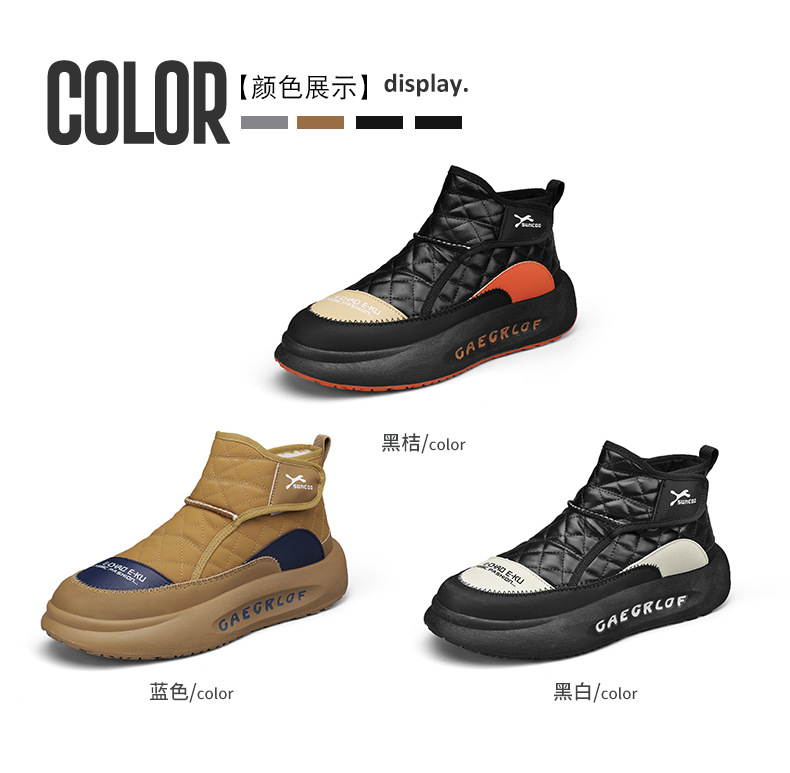 2025冬季新款男鞋厚底防滑雪地靴男士休闲鞋加绒加厚棉鞋一件代发