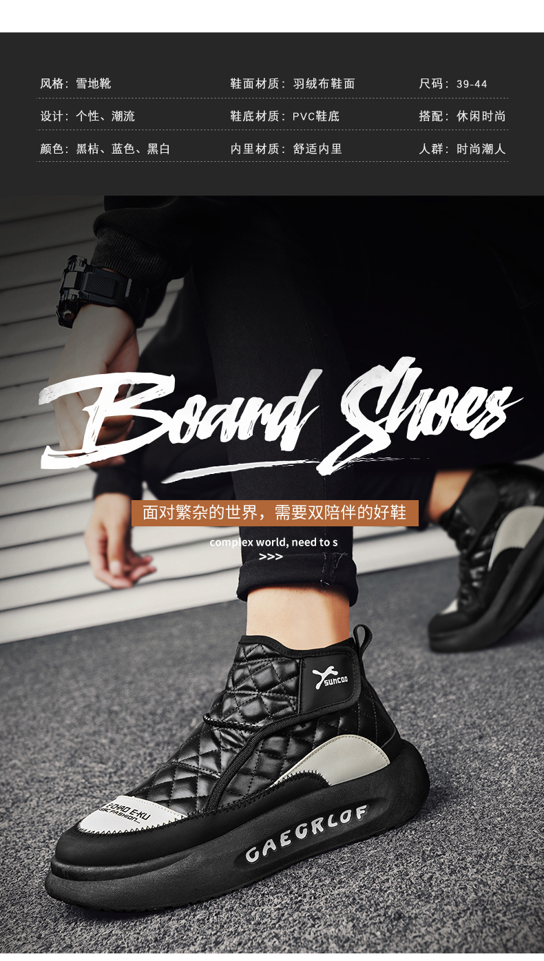 男性靴の新型ベルベットは保温雪地靴の厚い底滑り止めレジャー高助綿靴男性防寒潮靴を厚くした