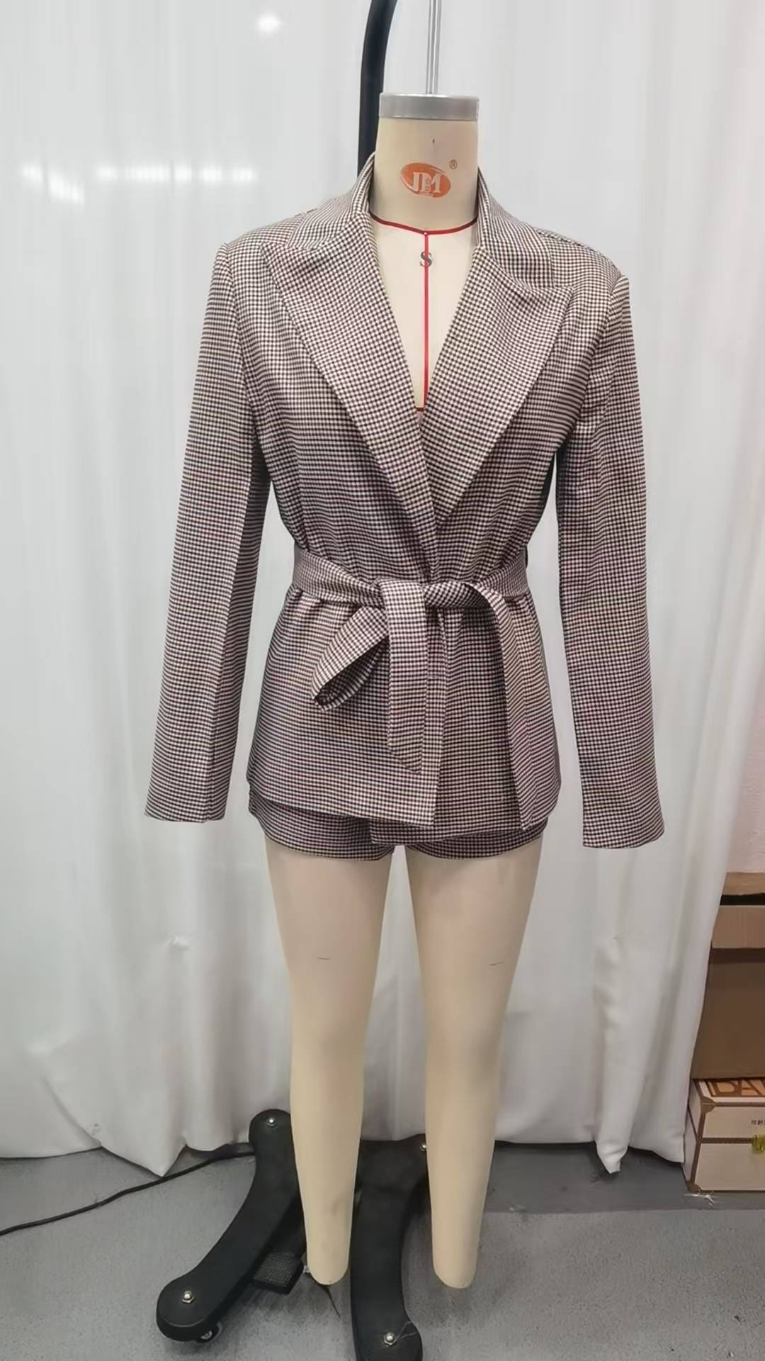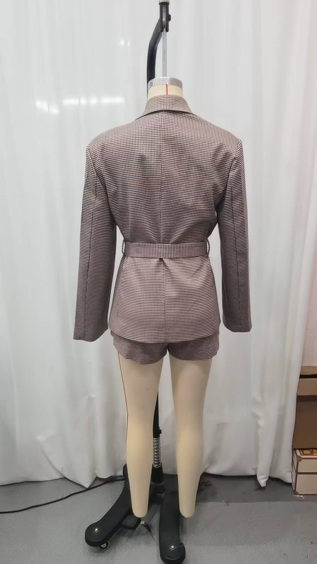 2025年早秋新品跨境速卖通爆款时尚气质千鸟格西装外套短裤套装