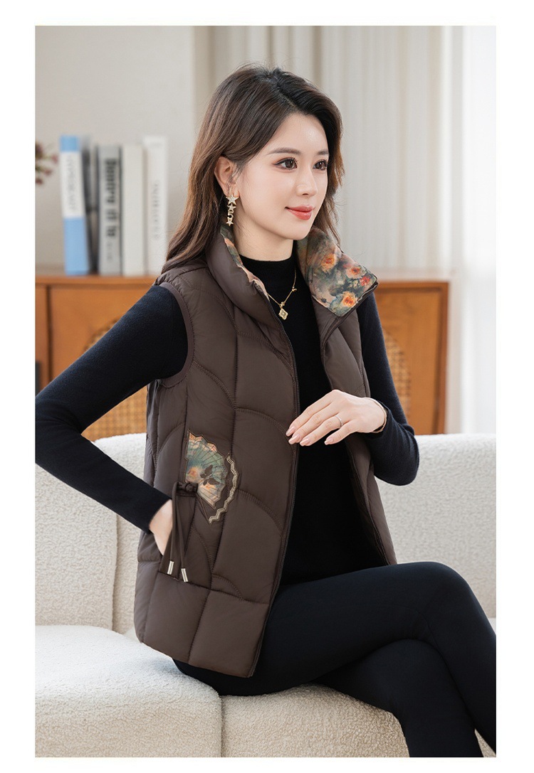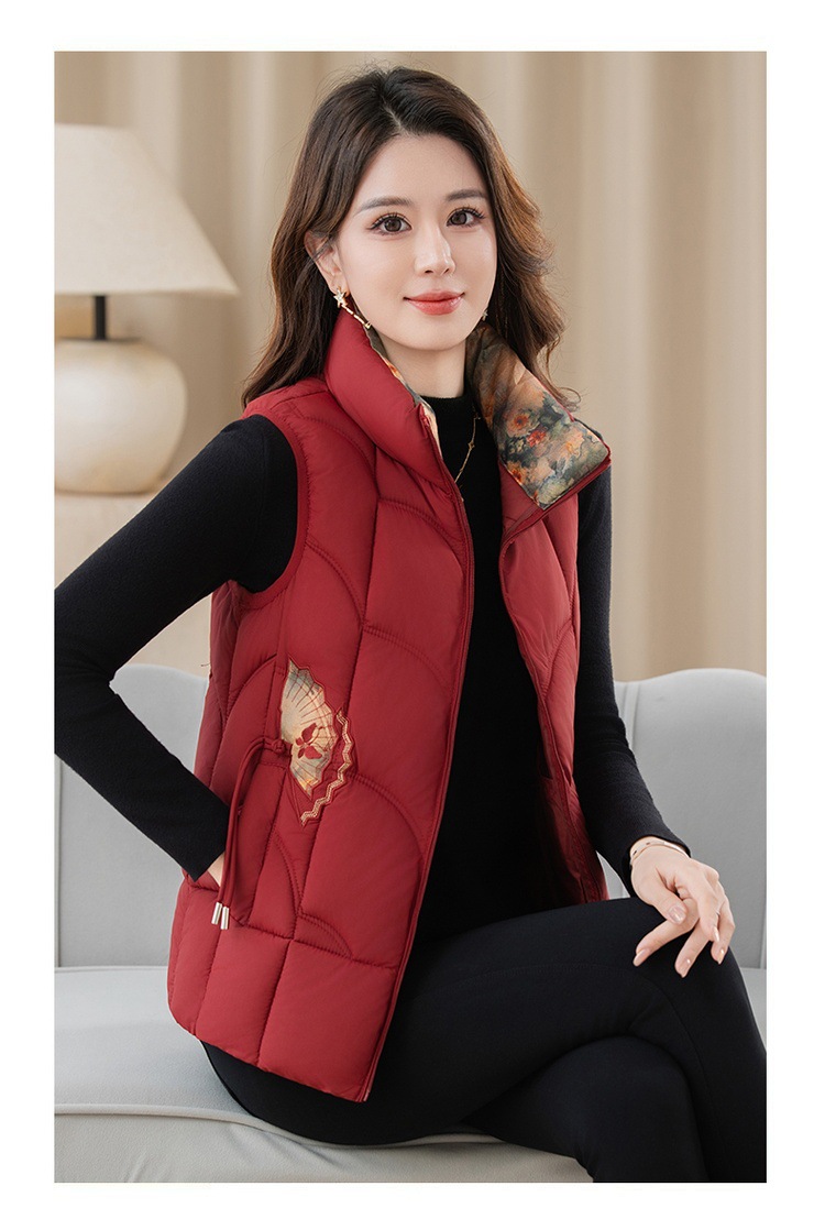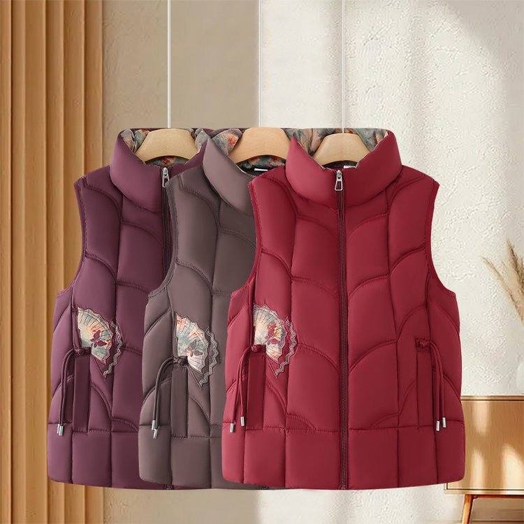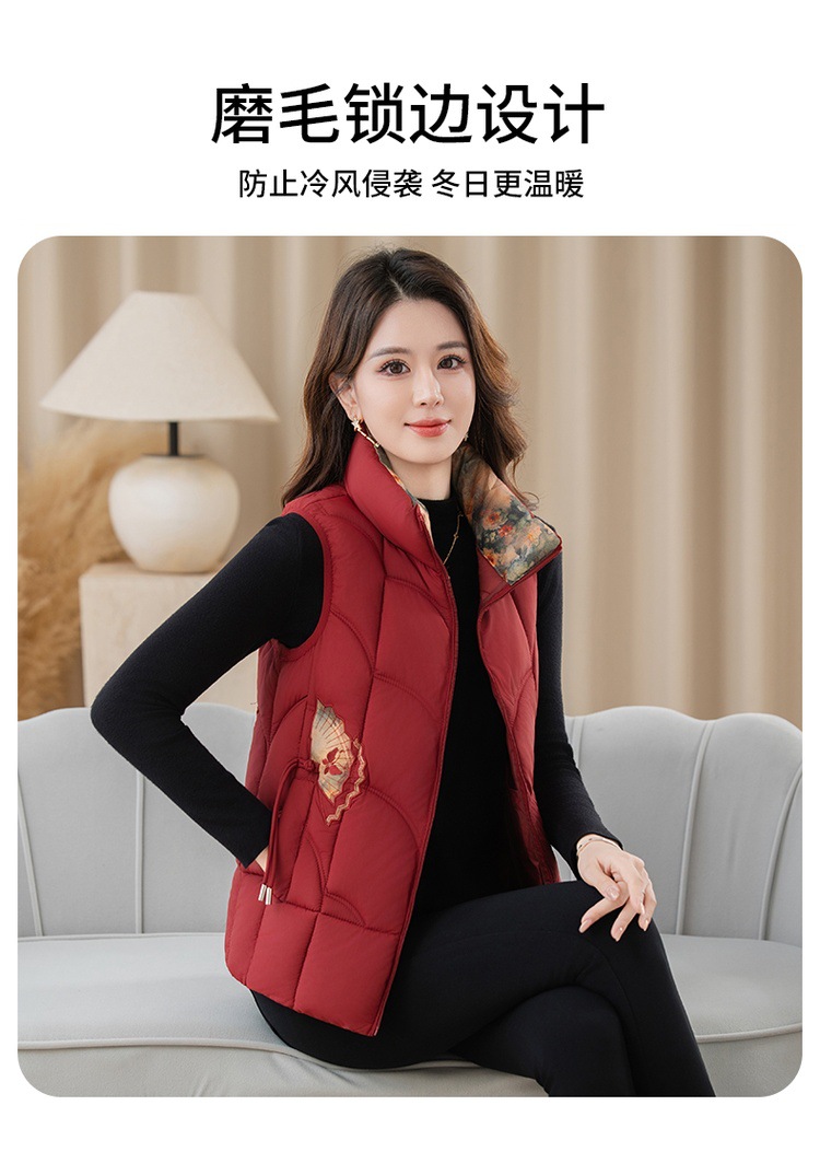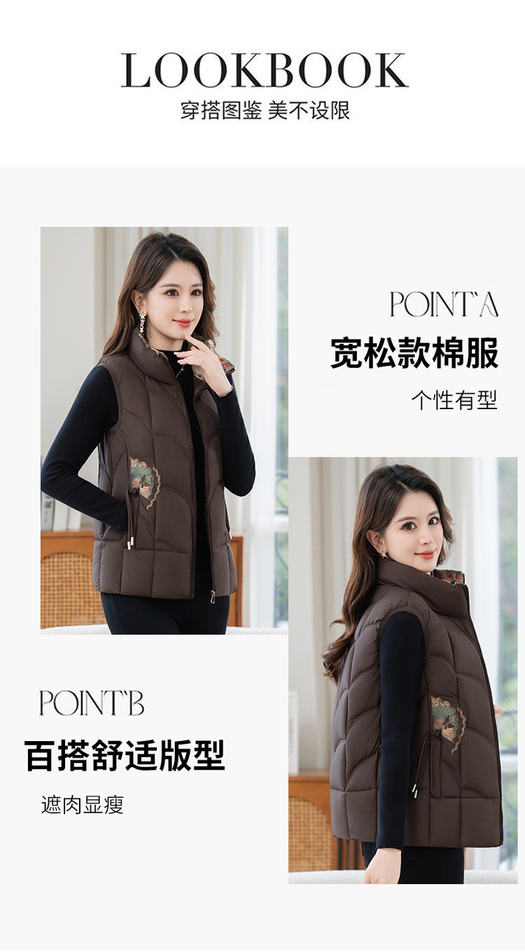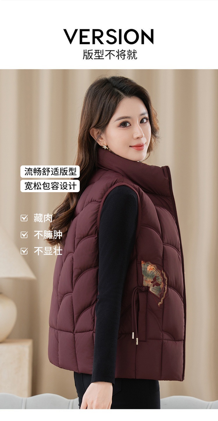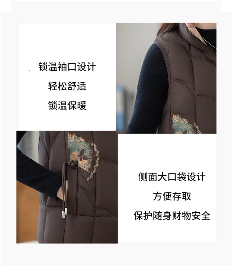 新中式国风妈妈绣花外穿马甲中老年女秋冬新款奶奶装保暖马夹外套