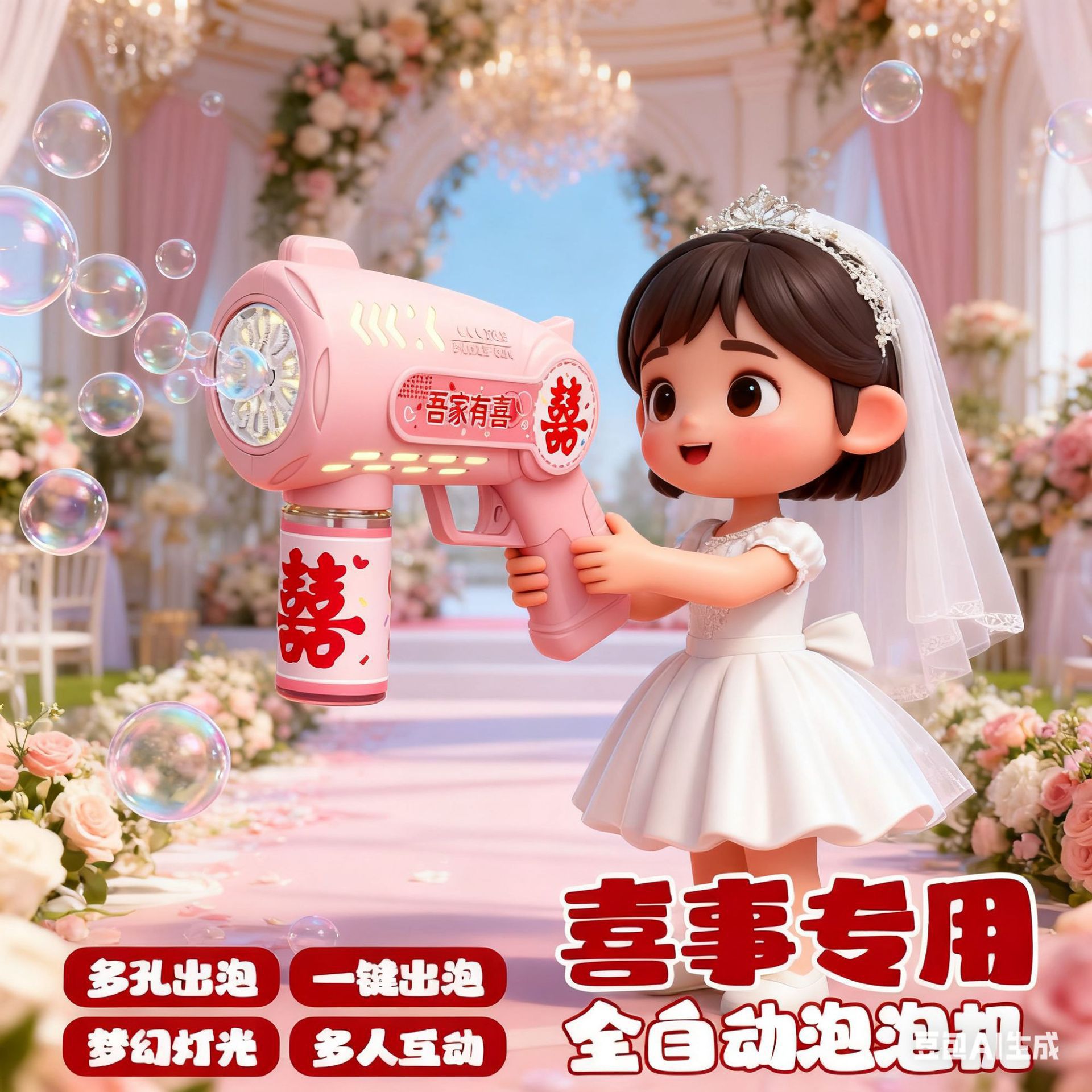 跨境婚礼新年喜庆泡泡机全自动手持泡泡枪氛围感出片结婚玩具礼物