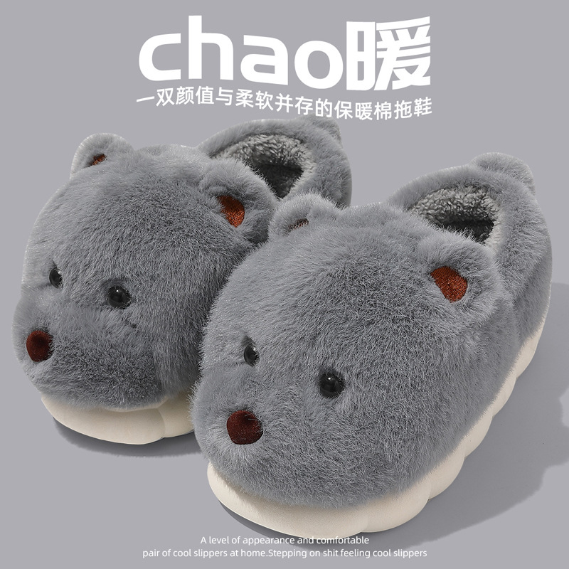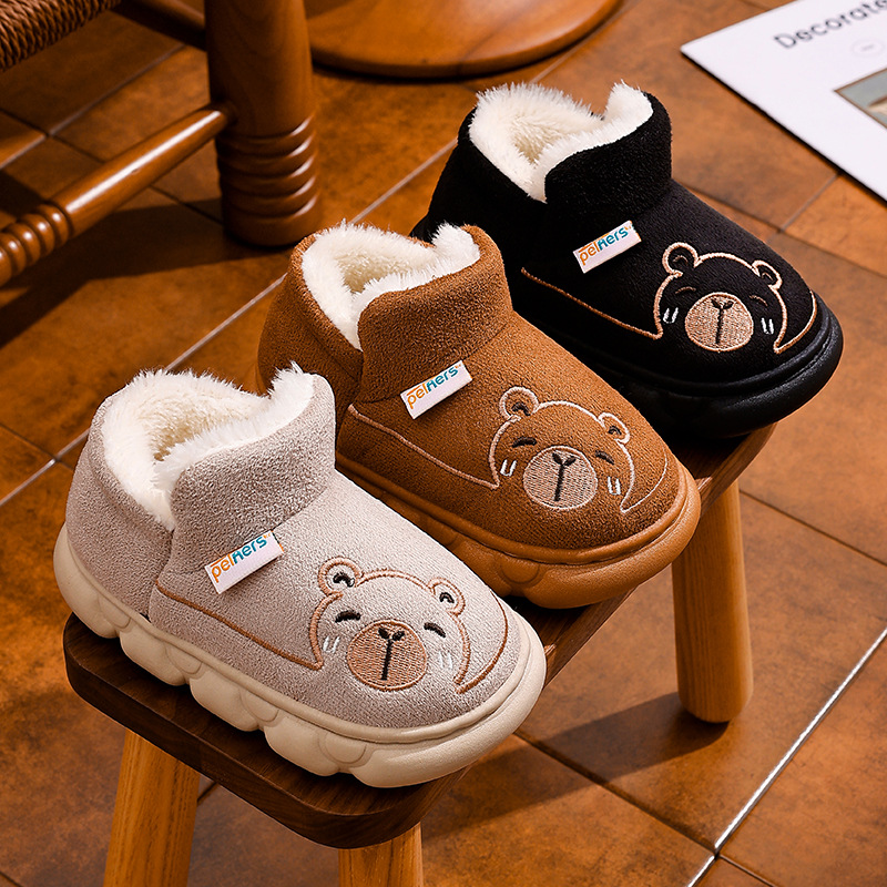 卡皮巴拉冬季棉拖鞋男女童保暖加绒毛毛居家亲子小孩包跟棉鞋