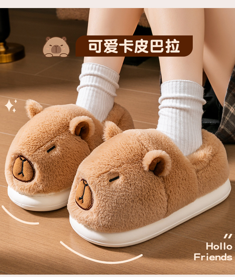 卡皮巴拉宝宝棉拖鞋防滑保暖室内软底居家男童秋冬宝宝毛毛拖女童